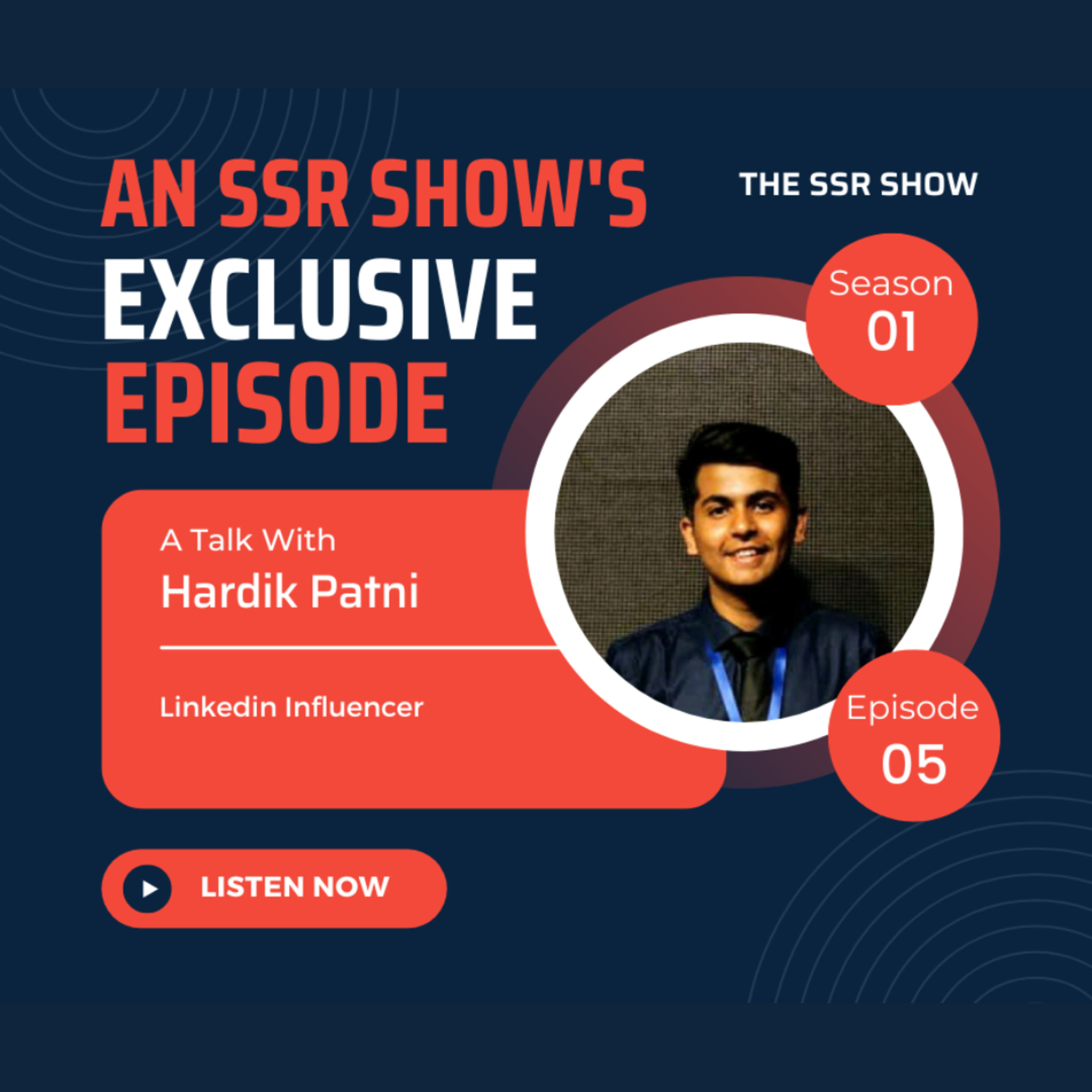Hi Welcome to The fifth Episode of The SSR Show. Hardik is a HOST of a Podcast, Linkedin Influencer, Startup Enthusiast