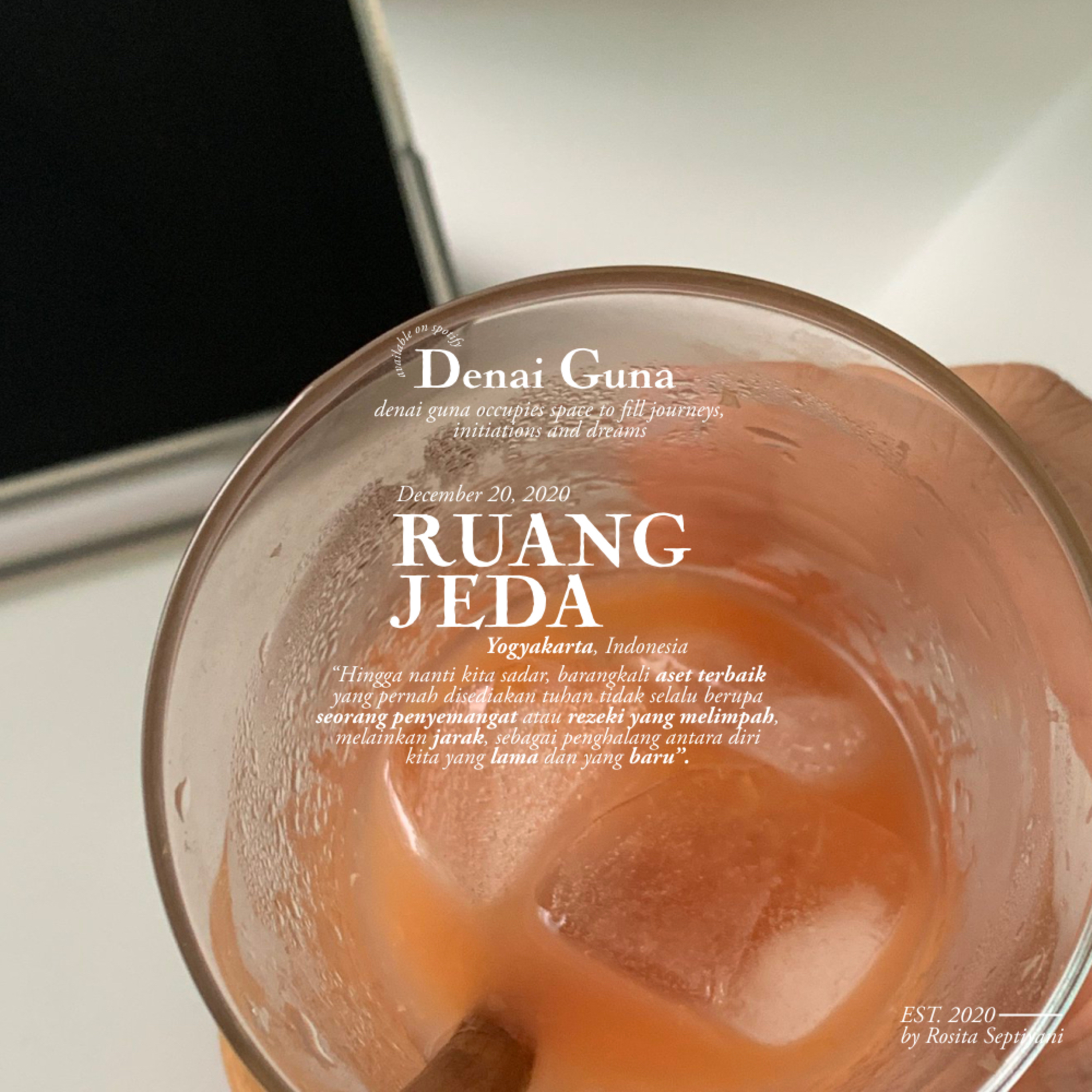 hingga nanti kita sadar, barangkali aset terbaik yang pernah disediakan tuhan tidak selalu berupa seorang penyemangat atau rezeki yang melimpah, melainkan jarak. sebagai penghalang antara diri kita yang lama dan yang baru.