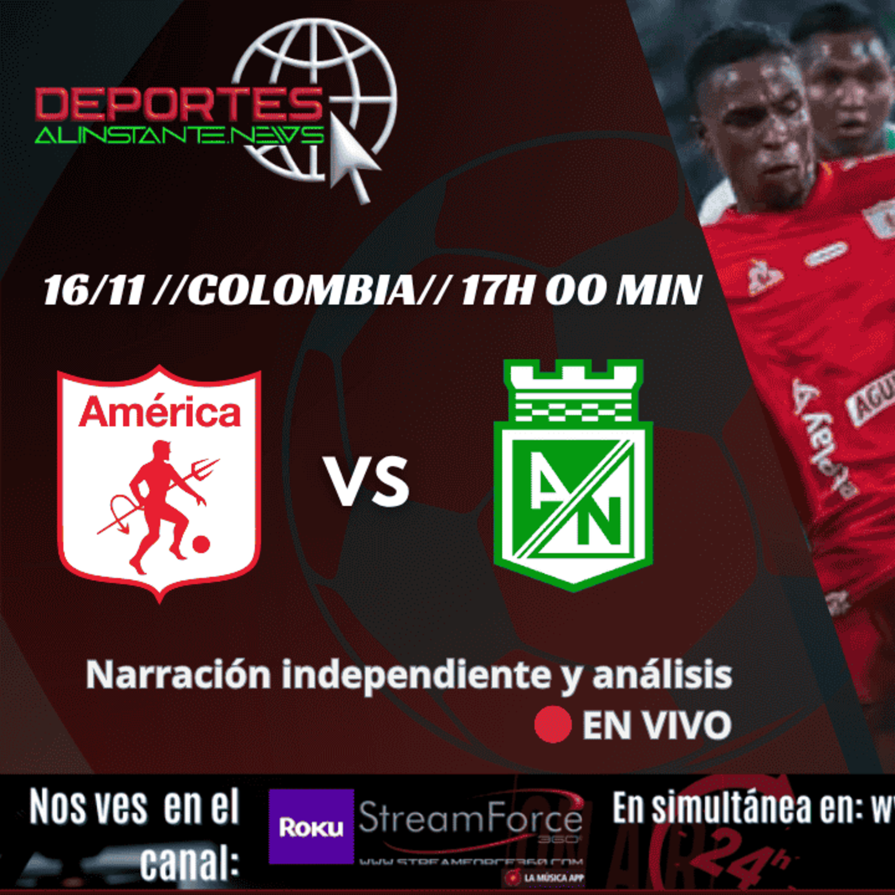 🎙️ SEÑAL ORIGINAL PRODUCIDA POR DEPORTESALINSTANTE.NEWSCobertura especial del partido América vs Atlético Nacional, con narración propia, análisis táctico, lectura de juego en tiempo real y participación de la comunidad futbolera hispanohablante.🏟️ Acompáñanos en esta señal independiente mientras comentamos las claves del partido, los movimientos del cuerpo técnico y los jugadores determinantes en uno de los duelos más intensos del fútbol colombiano.⚠️ Contenido 100 % original.No usamos imágenes, clips ni audio del evento. Cumplimos todas las políticas de YouTube, Meta, TikTok, Kik y Twitch.👥 Red oficial de medios Esfera Digital:📰 Noticias y actualidad: EsferaDigital.News⚽ Deportes y transmisiones: DeportesAlInstante.News🎬 Entretenimiento visual: FarandulaEnVivo.com🔐 Aviso legal:Esta señal es original de DeportesAlInstante.News.Prohibida su retransmisión sin autorización expresa.© 2025 StreamForce 360° Media Group📡 Producción técnica: StreamForce 360° Media🎙️ Equipo de narración: DeportesAlInstante.News💬 Participa y suscríbete:👉 Canal oficial: @DeportesAlInstanteNews