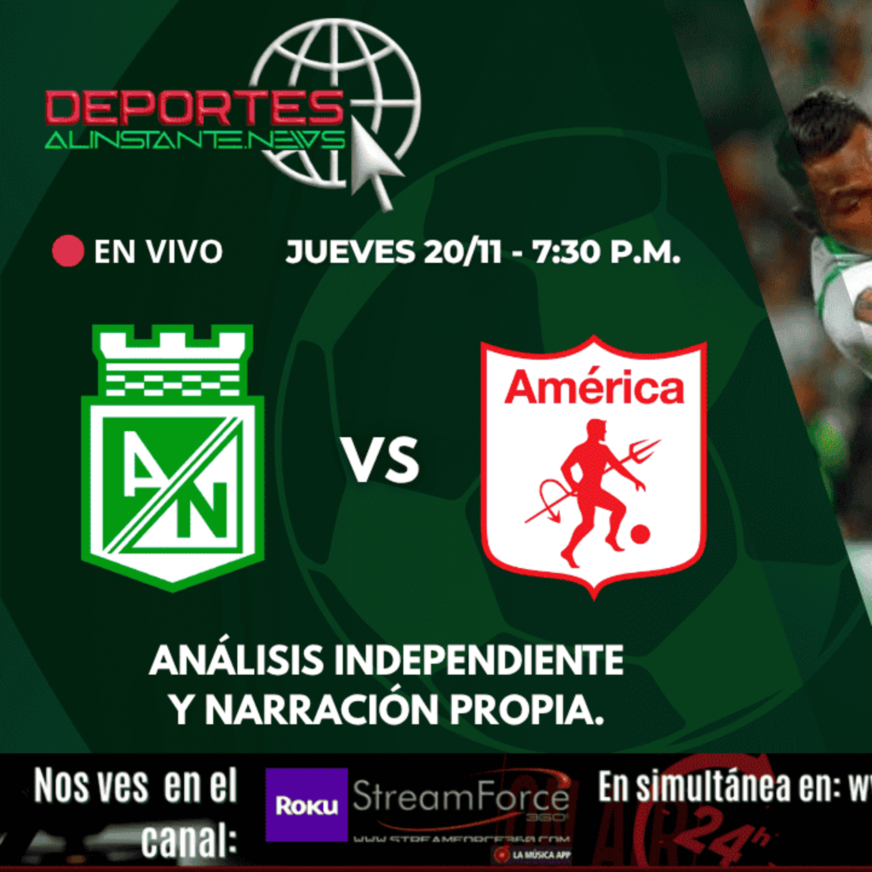 ⚡ Evento: Atlético Nacional vs América de Cali📅 Fecha y hora: Hoy – 7:30 p.m. (hora local)🏟️ Lugar: Estadio Atanasio Girardot, Medellín🏆 Competencia: Fútbol profesional – Jornada oficialEste contenido es una cobertura periodística y análisis deportivo producido por DeportesAlInstanteNews, dentro del ecosistema informativo de StreamForce360.com, junto con EsferaDigital.News y FarandulaEnVivo.com.Todo el material —gráficas, locución, música y clips propios— es 100% original.🧩 Aviso de cumplimiento legal:No se muestra ni retransmite señal de televisión o streaming.El contenido es análisis, opinión y cobertura informativa propia.Contacto oficial: proyectos@streamforce360.com👉 Suscríbete y activa la campana 🔔 para más coberturas, resúmenes y análisis deportivos exclusivos.🌐 Plataforma principal: https://DeportesAlInstante.News🎥 Ecosistema oficial: StreamForce360.com