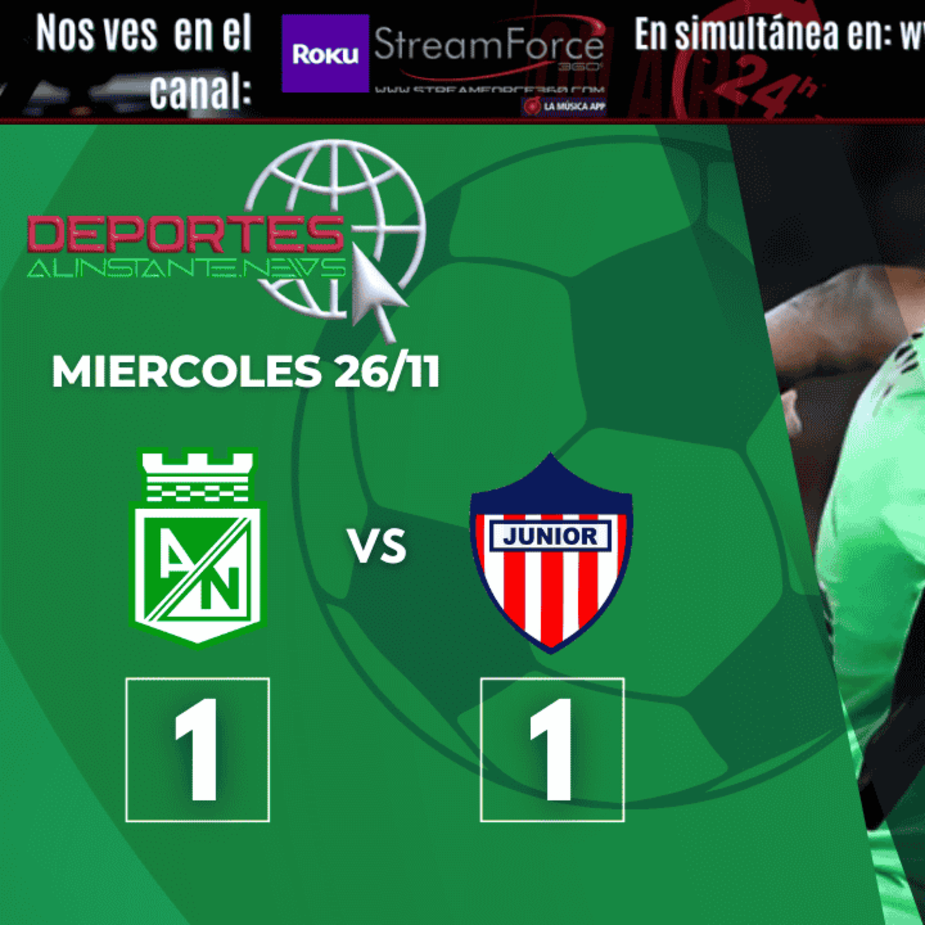 ⚡ Evento: Nacional vs Junior📅 Fecha y hora: 26 de noviembre de 2025 – 8:30 p.m. (hora de Colombia) 🏟️ Lugar: Estadio Ditaires (Itagüí) 🏆 Competencia: Cuadrangulares 2025🎯 Presentación:Esta noche se vive un duelo de alto voltaje entre dos gigantes del fútbol colombiano. Nacional y Junior llegan en busca del liderato del grupo —ambos con hambre de triunfo, orgullo en juego y miles de hinchas expectantes. Te traemos el análisis más claro, las claves tácticas, los momentos decisivos y una narración cercana: como si tú estuvieras en la tribuna. Quédate con nosotros y vive el partido desde otra óptica.🎙️ Producción original:Este contenido es realizado por DeportesAlInstanteNews, parte del ecosistema StreamForce360º, junto a EsferaDigital.News y FarandulaEnVivo.com. Además, nuestra señal también se puede sintonizar en Roku, por el canal StreamForce360 dentro de La Música App.Todo el material —opinión, gráficos y narrativa— es 100 % original, libre de derechos y cumple con las normas de contenido seguro.🧩 Aviso legal:No retransmitimos señal oficial ni mostramos clips protegidos. Este video corresponde a un análisis y cobertura independiente, realizado desde nuestra propia producción. StreamForce360.com — contacto: proyectos@streamforce360.com — “Contenido informativo – No muestra señal oficial.”📡 ENLACES DE COMUNIDAD Y SUSCRIPCIÓN📲 WhatsApp: https://chat.whatsapp.com/K7T0VOEHt0y...▶️ Suscríbete: / @deportesalinstantenews 🌐 Sitio principal: https://DeportesAlInstante.News🎥 Ecosistema oficial: StreamForce360.com📲 Síguenos en redes: @DeportesAlInstanteNews👉 Quédate hasta el final y comenta tus pronósticos del partido.👉 Suscríbete y activa la campana 🔔 para no perder nuestros análisis exclusivos.👉 Entra a DeportesAlInstante.News para más contenido deportivo de calidad.👉 Comparte este video con tu comunidad de hinchas latinoamericanos.