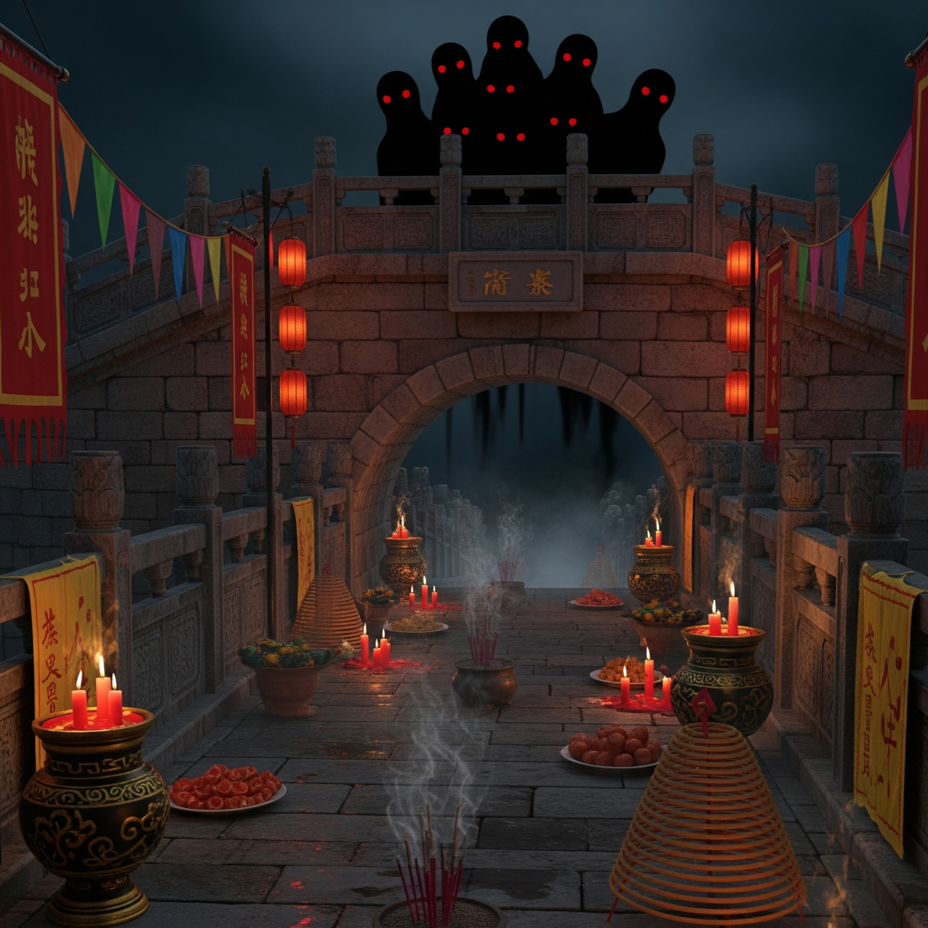 Dicen que en el Festival de los Fantasmas Hambrientos, el más allá abre sus puertas… y uno de los lugares más temidos es el Puente de las Almas.