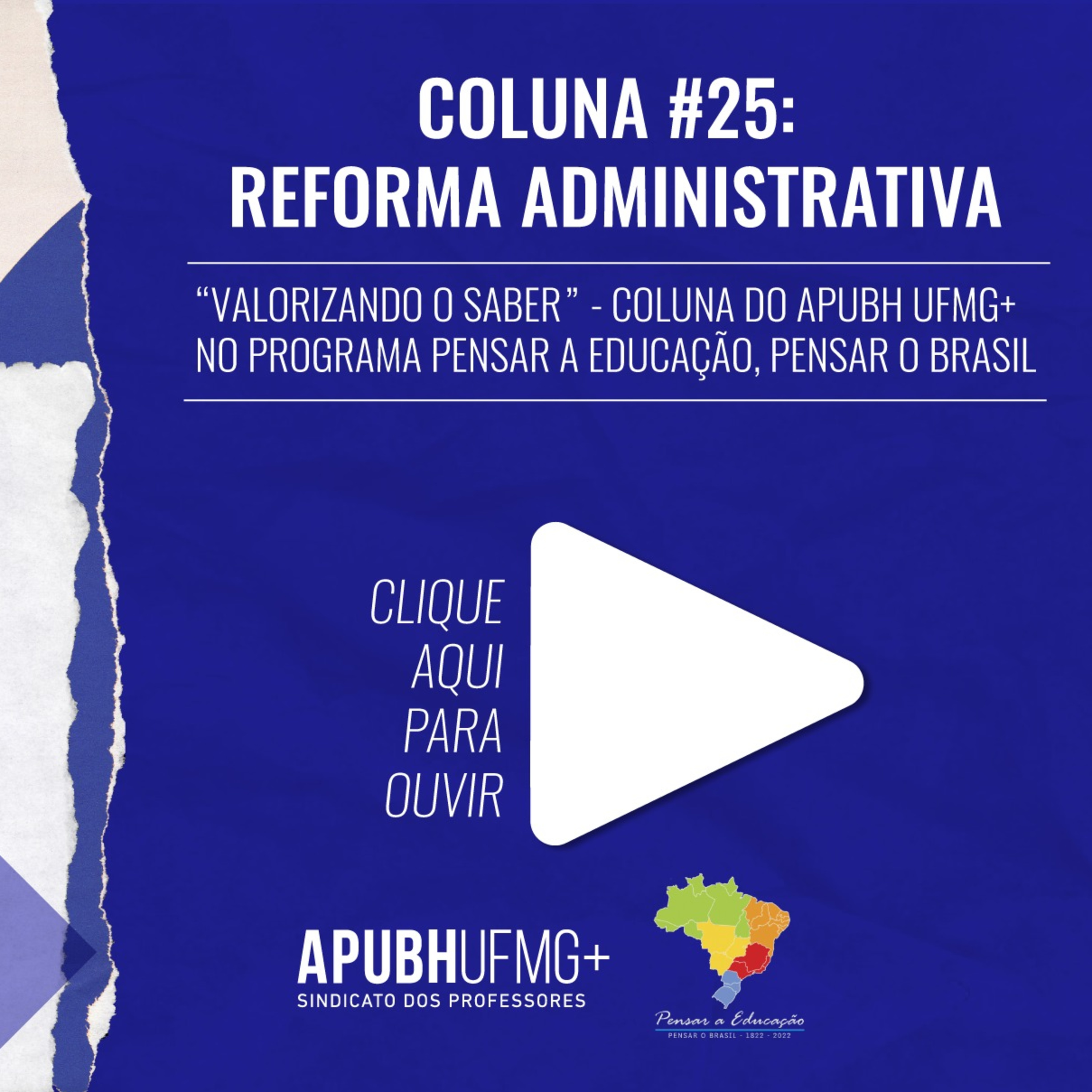 "Valorizando o Saber" - Coluna #25 - Reforma Administrativa - no programa Pensar a Educação, Pensar o Brasil.