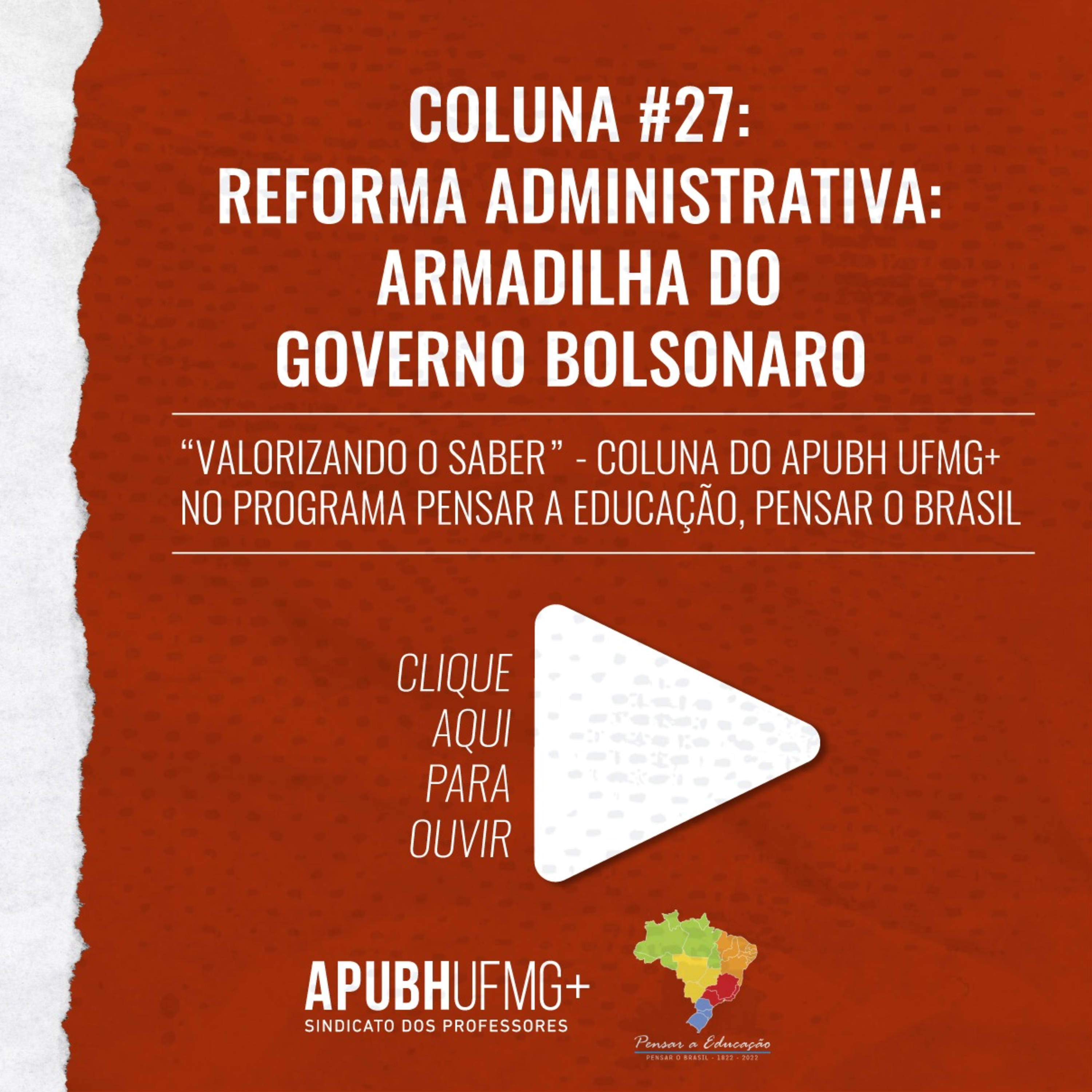 "Valorizando o Saber" - Coluna #27 - Reforma Administrativa - Armadilha do Governo Bolsonaro - no programa Pensar a Educação, Pensar o Brasil.