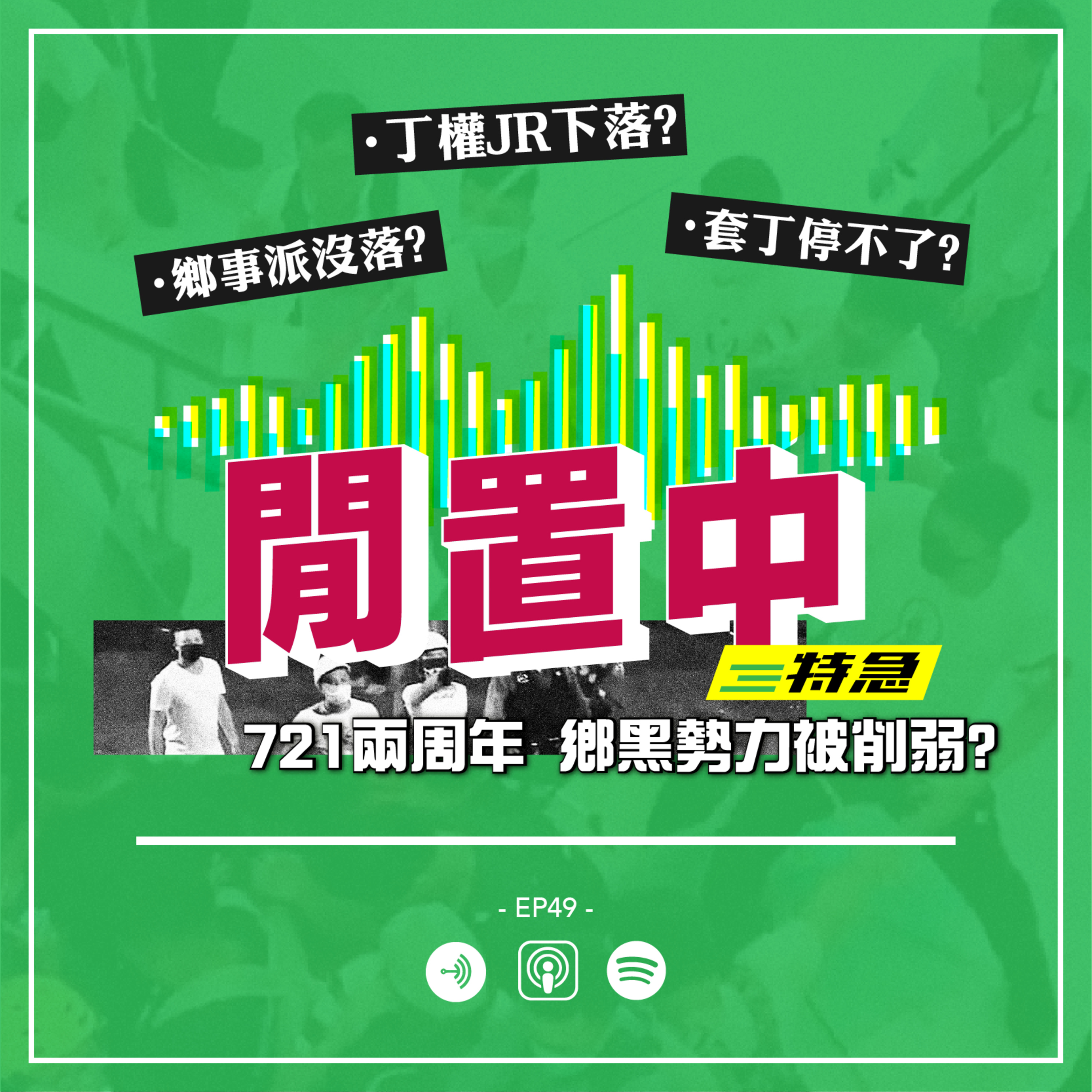 【閒置中-特急】721兩周年 鄉黑勢力被削弱? 721事隔兩年,有白衣人被揭發曾參與曉門套丁案,而丁屋大王王光榮亦被廉署調查。 今集研究員同你快問快答,迅速探討這兩年間721白衣人、鄉事派以及政府背後政經結構嘅角力,回顧喺套丁問題上最新嘅土地、政治及經濟現況,同時嘗試回應呢兩年民間發起嘅清算鄉黑行動結果如何?套丁問題係咪就咁解決咗?鄉事派係咪就咁沒落? 研究完:涼、劍