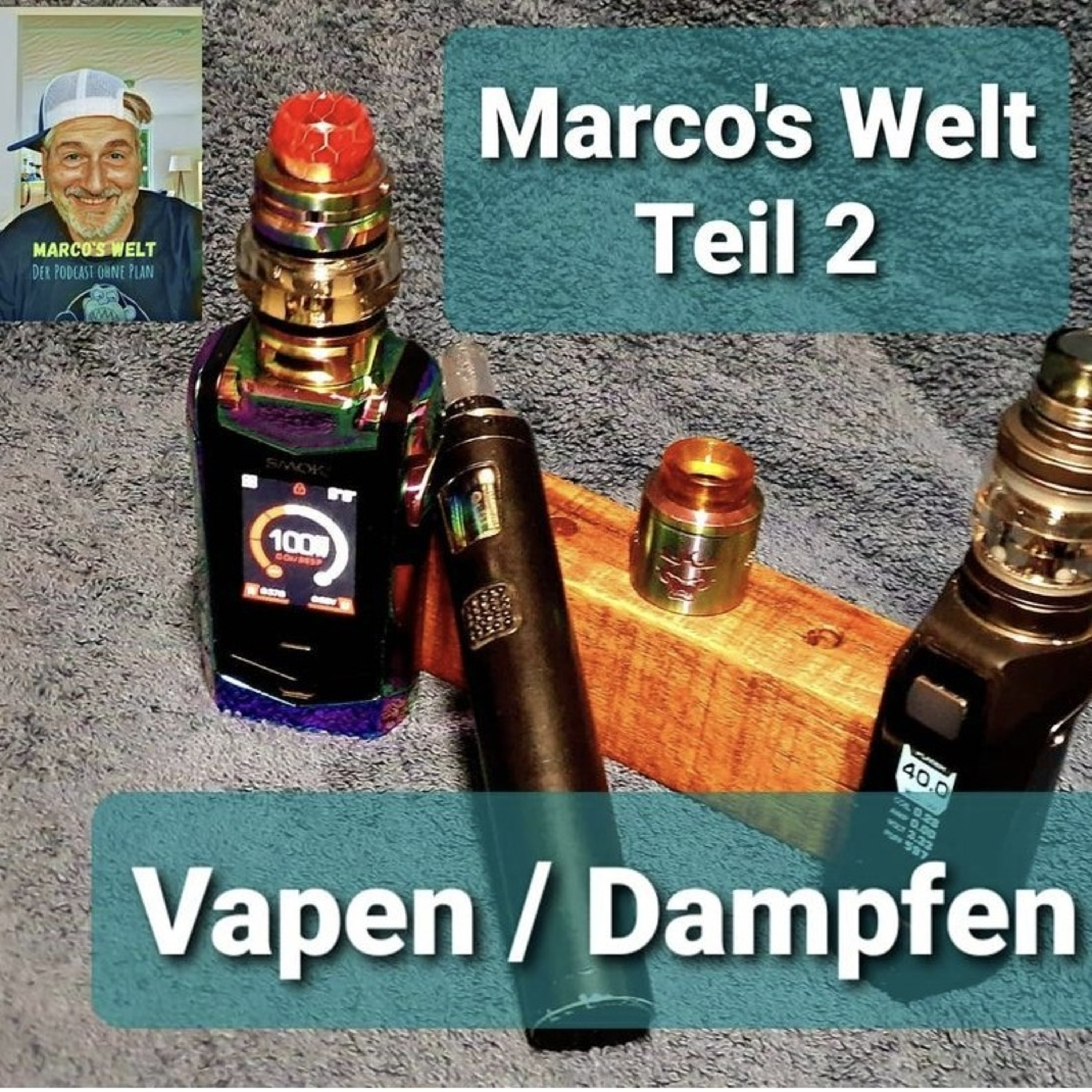 In Folge zwei berichte ich über das Dampfen. Was ist Dampfen, wie bin ich dazu gekommen, welche Geräte und Liquids besitze ich. Grüße gehen raus an Einfach Tony, Dampfdidas, SMOK und GeekVape. Gerne könnt ihr mir schreiben unter MarcosWelt@mein.gmx oder Instagram @der_podcast_ohne_plan PS: Ich bekomme von keinen benannten Hersteller etwas geschenkt oder bezahlt, mußte mir alles selber kaufen!