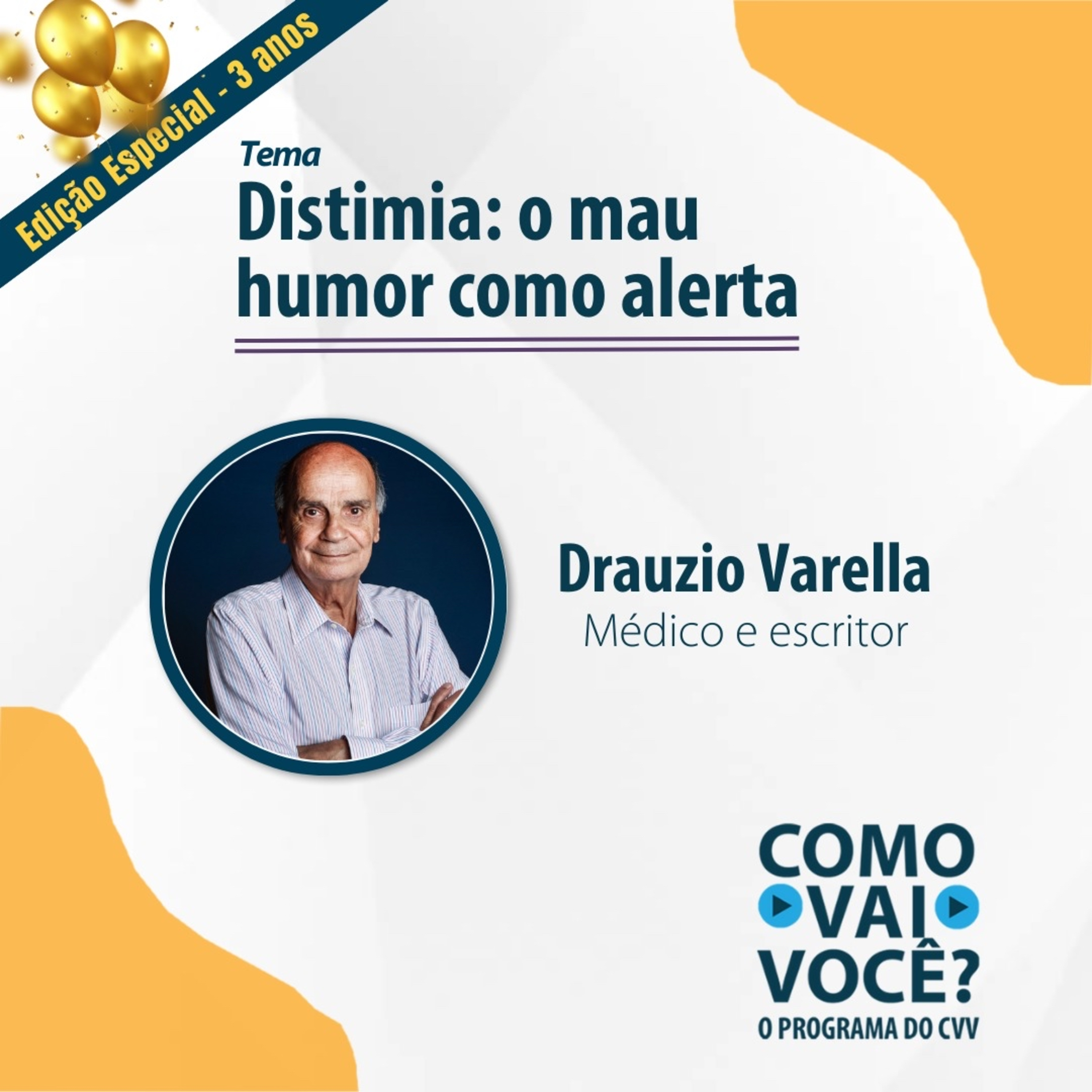 O #PodcastDoCVV traz um bate-papo com o médico Drauzio Varella sobre distimia, um tipo de depressão crônica que tem como principais sintomas a irritabilidade, a baixa autoestima, o desânimo, a tristeza e a predominância de pensamentos negativos.