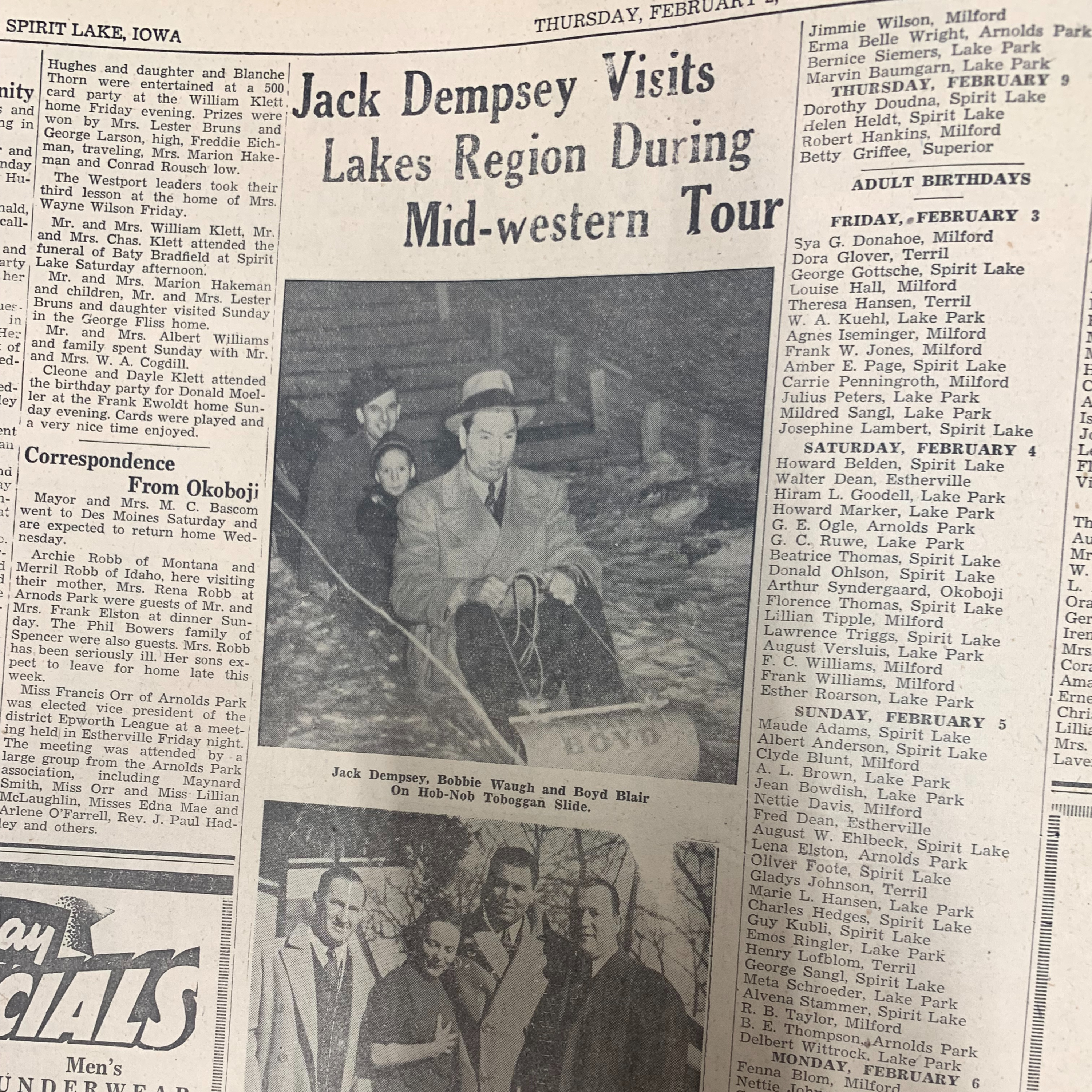 Imagine a mighty Toboggan ride in the Iowa Great Lakes that not only entertained children and adults during the Winter, that a Heavy Weight Champion of the World came to behold it. Mary Dreier, Director of the Dickinson County Museum takes us on a bumpy ride…hand made by locals and enjoyed by the thousands in the late 1930’s. Where was it? Where did it go and what did kids do to make it just a little more dangerous?