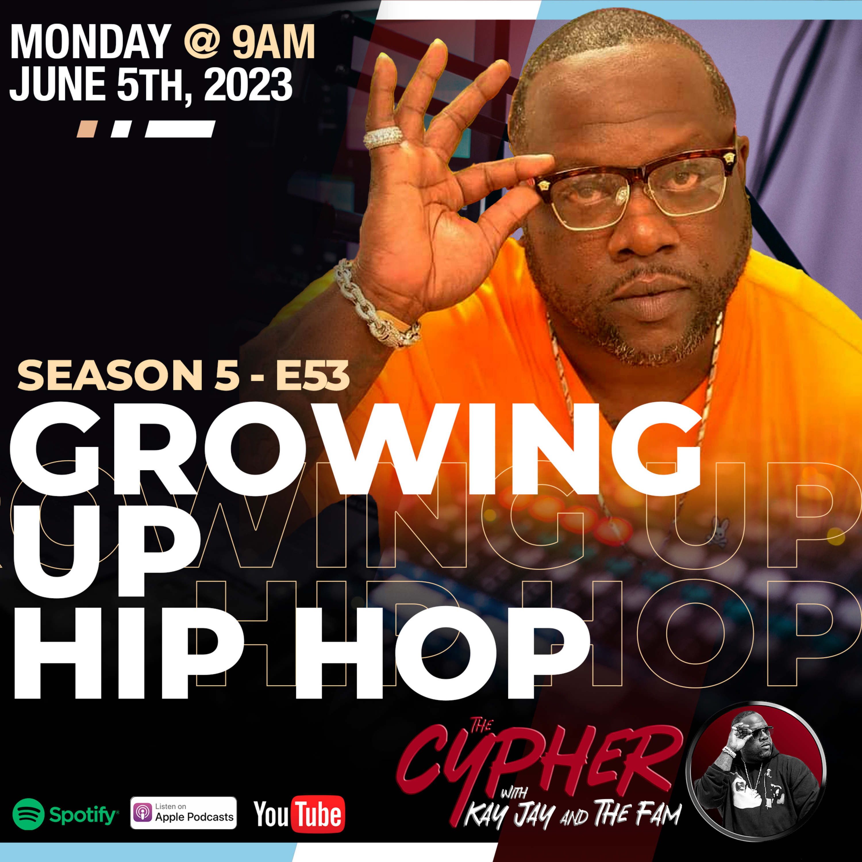 Growing Hip Hop. What does that mean to you? The Cypher with Kay Jay and The Fam sits down with a born and raised Memphis Artist Mafia Chub 3× and discuss how his upbringing in Hip Hop and having a legend as a father that started the Memphis Hip Hop scene. You have to listen in and find out who we're talking about in this episode that's a legend in the game. CP, D Babi and Cousin Geno digs in on all types of levels on this episode about being raised by this genre called Hip Hop. CHUUUCH ON THE MOVE and Pay Your Tithes On The Spot ‼️ 👌🏿