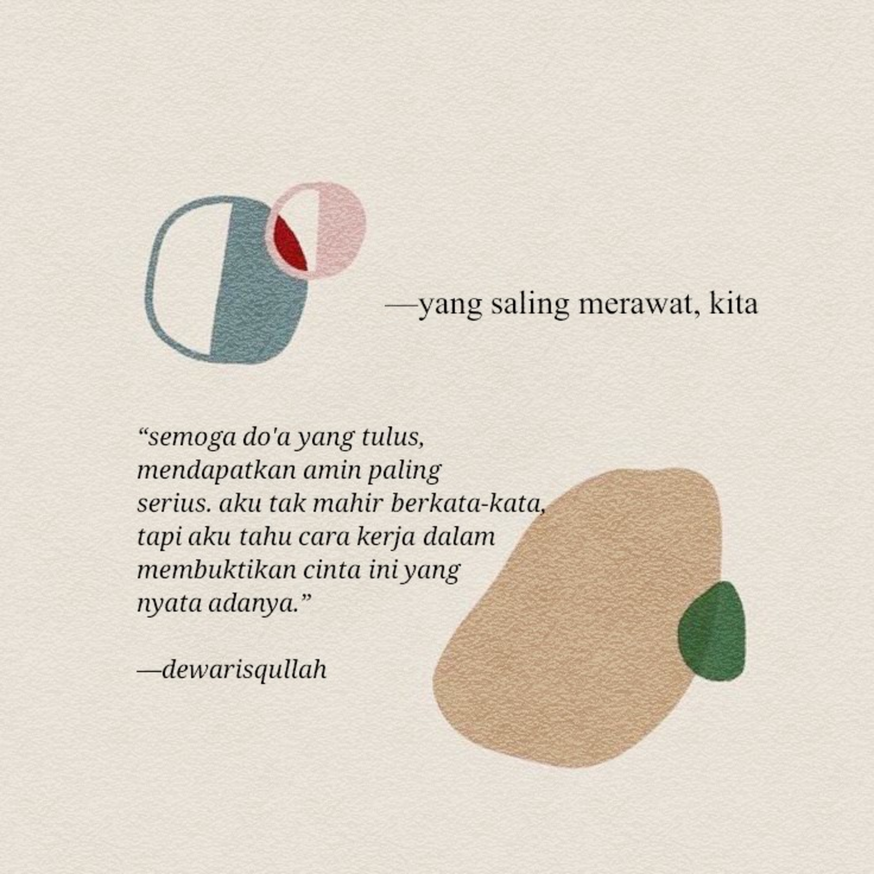 kalau saat ini kita masih di kasih waktu untuk tetap bersama-sama, ya saling jaga dan rawat semana mestinya. semoga do'a yang tulus, mendapatkan amin paling serius. aku tak mahir berkata-kata, tapi aku tahu cara kerja dalam membuktikan cinta ini yang nyata adanya.