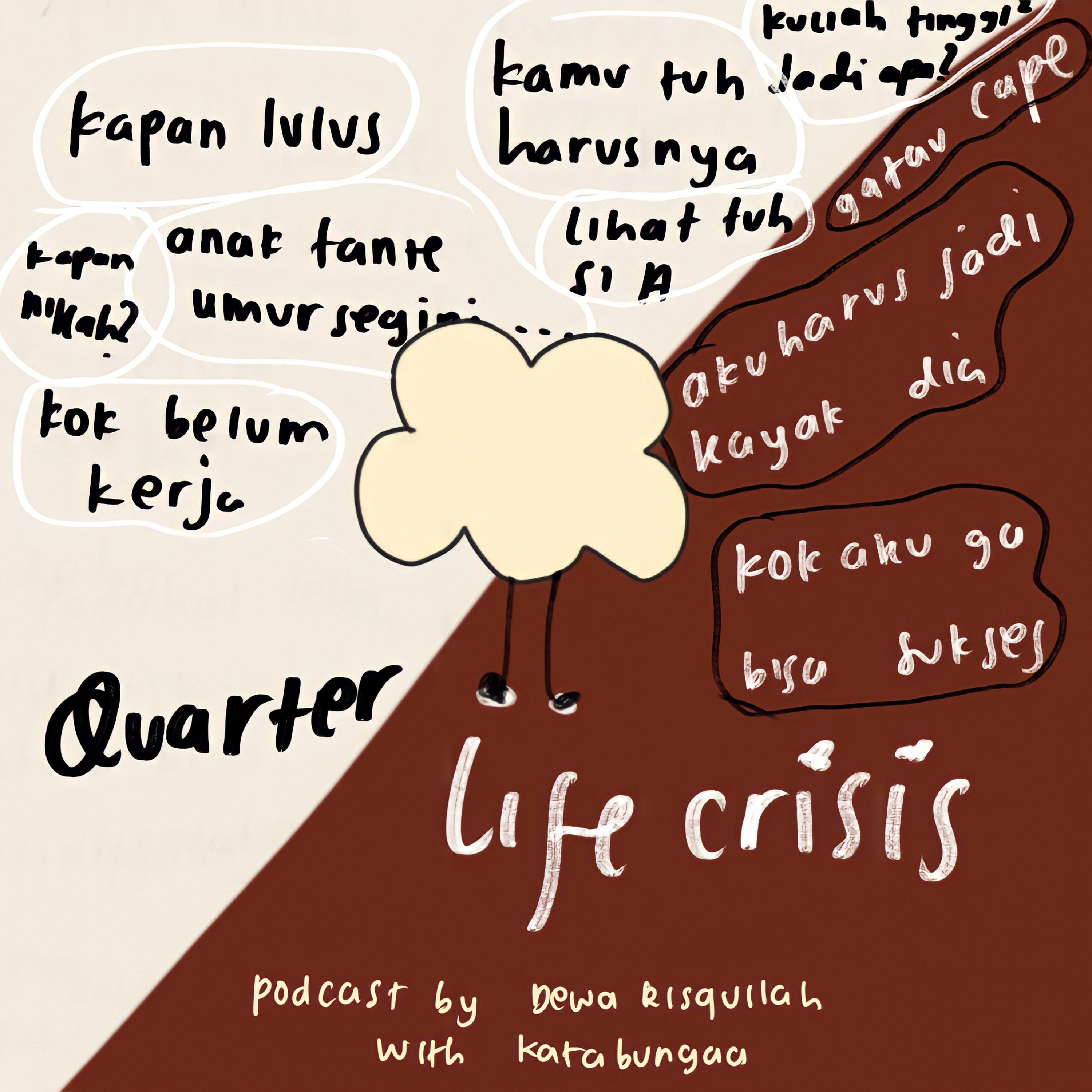 Quarter-Life Crisis: Krisis seperempat abad merupakan istilah psikologi yang merujuk pada keadaan emosional yang umumnya dialami oleh orang-orang berusia 18 hingga 30 tahun seperti halnya kekhawatiran, keraguan terhadap kemampuan diri, dan kebingungan dalam menentukan arah hidup. Episode kali ini berbincang dengan Lutfi Bunga Anggarini (@katabungaa) kalian bisa menemukannya di Instagram @katabungaa dan juga podcastnya "Kata Bungaa". Terima kasih semuanya sudah berkenan untuk mendengarkan.