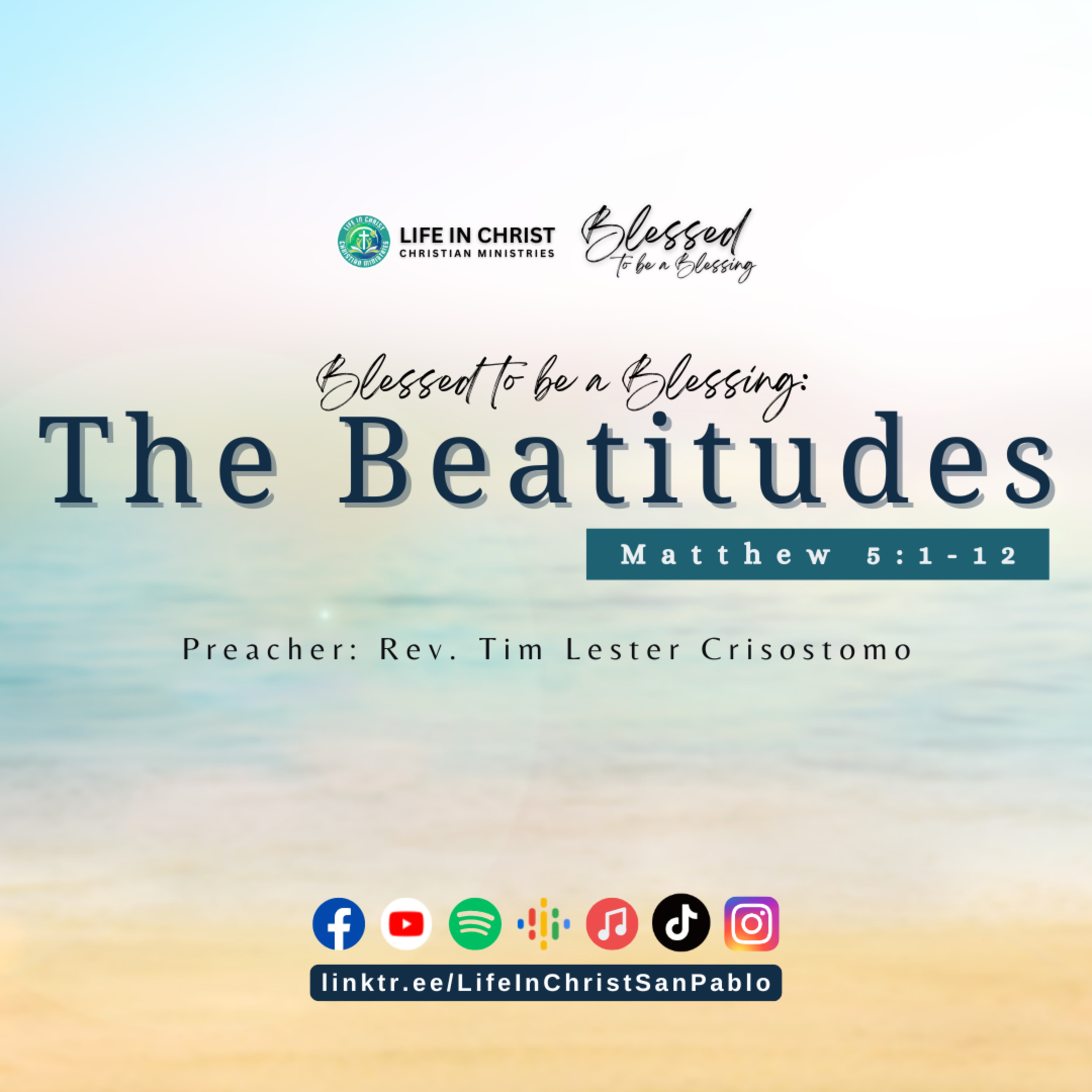 In this enriching episode, Rev. Tim Lester Crisostomo delves into the profound wisdom of The Beatitudes and its powerful message of being "Blessed to be a Blessing." Drawing from Matthew 5, Rev. Tim explains how God's blessings go beyond material wealth, emphasizing a deeper spiritual journey of faith, humility, and righteousness. He highlights key insights about trusting in God, mourning our sins, and embodying meekness and spiritual hunger.