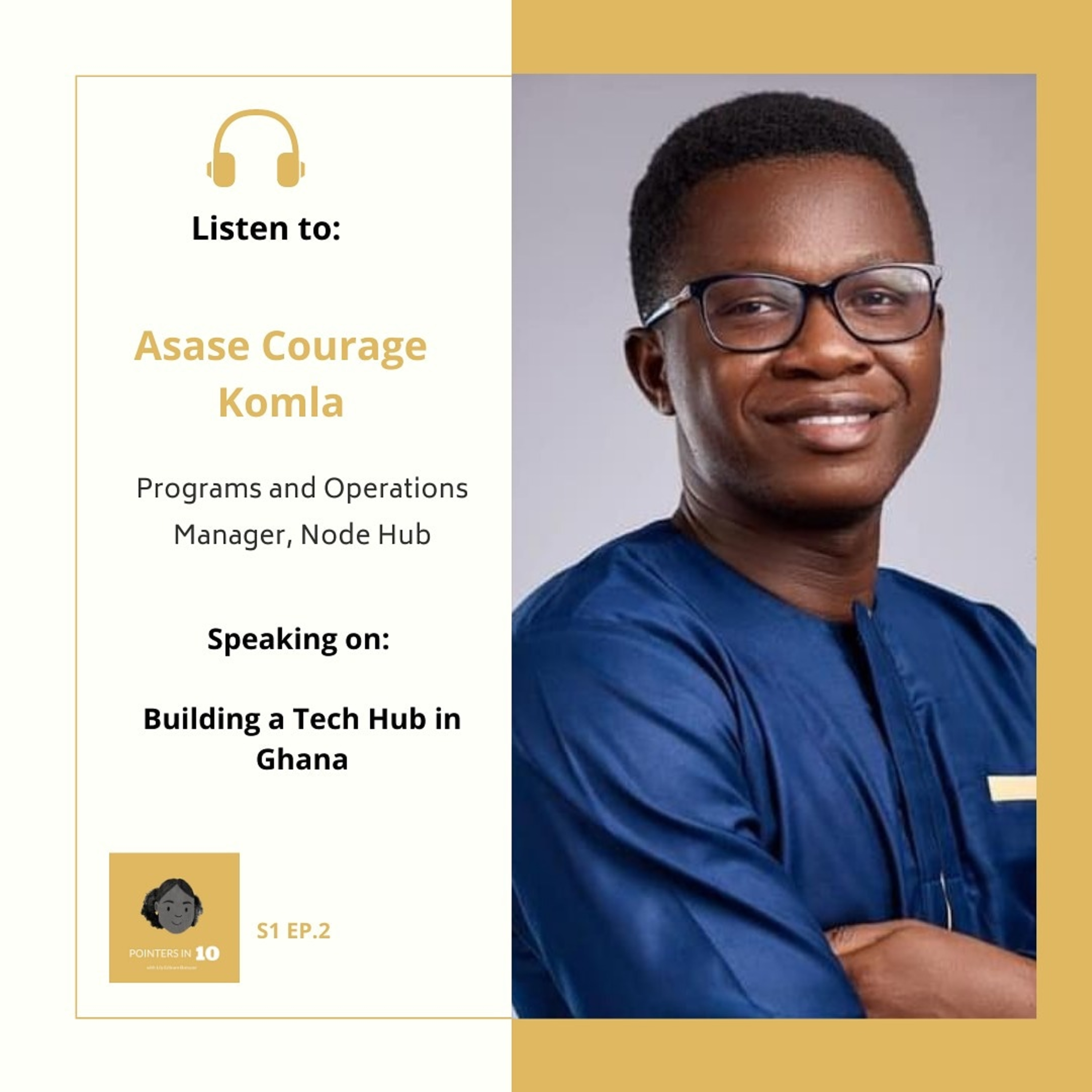 Our guest, Asase Courage Komla ( Programs and Operations Manager, Node Hub ) as he shares on Building a Tech Hub in Ghana and his love for photography.