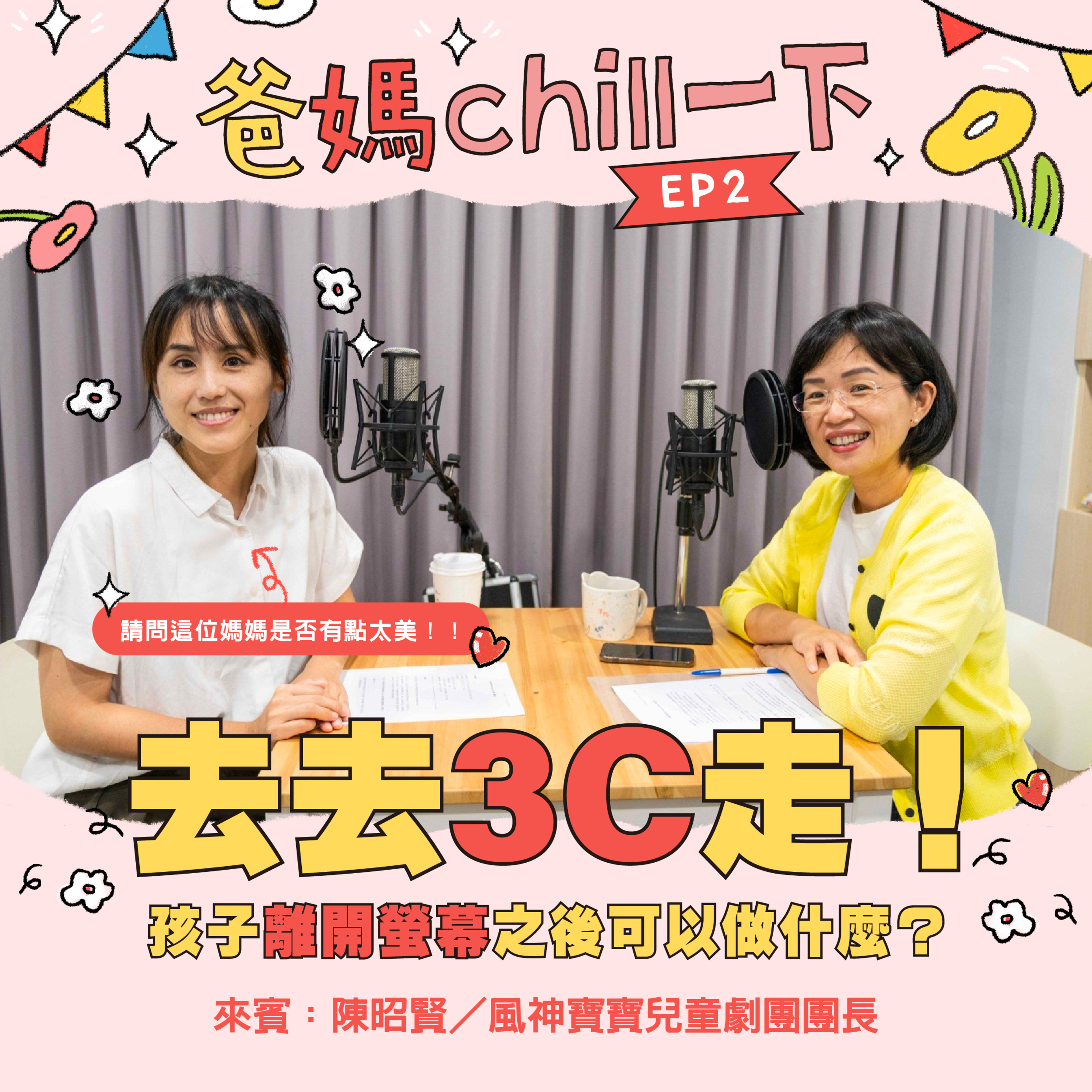 【去去3C走!孩子離開螢幕之後可以做什麼?】 現在的生活人手一機, 孩子的休閒娛樂也都離不開手機和平板, 不可否認的是,3C產品在適當的時機, 可以作為學習的輔助工具。 不過,3C產品有用之外, 也真的很容易完全佔據小孩的注意力, 這不只會讓孩子錯過生活周遭有趣的事物, 甚至和家人間的互動減少。 今天我們邀請明華園總團執行長 aka 風神寶寶兒童劇團團長──陳昭賢! 來和我們分享自己和孩子交手的經驗, 以及如何吸引小朋友的目光,把視線停留在舞台上!