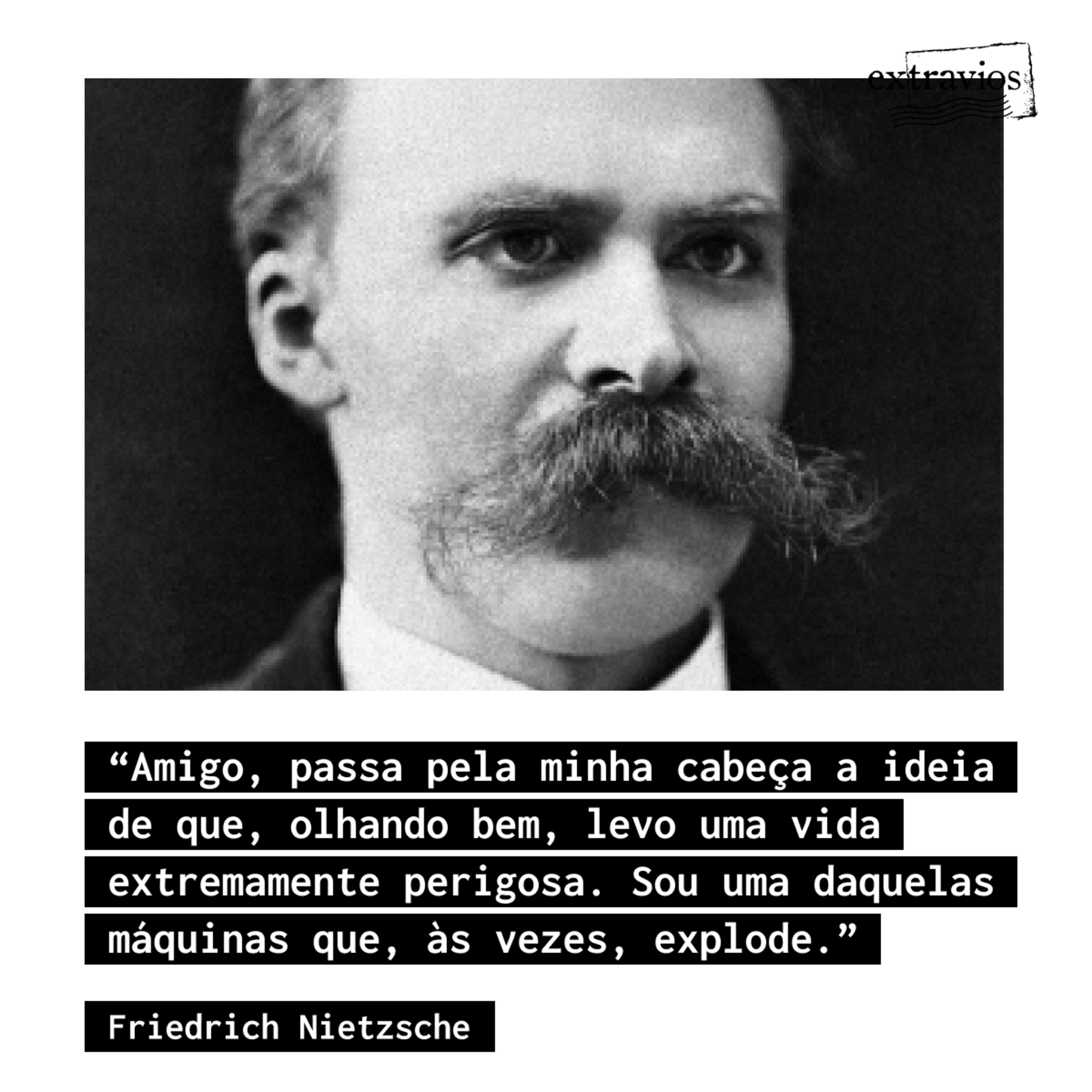 Nietzsche (1844-1900) escreve ao compositor e amigo Peter Gast (apelido de Heinrich Köselitz, ganho de Nietzsche), quando teve a visão do Eterno Retorno ("Ewige Wiederkunft") — um de seus principais pensamentos, divisor de águas em sua obra e em sua vida. "Gosto dessa carta porque Nietzsche narra seu entusiasmo físico, sua inspiração corporal, ao mesmo tempo em que faz as pazes com seu passado e reconhece sua missão futura", diz Fernando Velasco, leitor e tradutor da carta. "É como se a visão do Eterno Retorno de todos os instantes da vida, em um tempo circular, tornasse seu corpo forte o bastante para superar dores antigas e encarar provações futuras: uma redenção terrena, por assim dizer." No entanto, a carta não nomeia vez alguma o Eterno Retorno. "Nietzsche faz questão de esconder o jogo", comenta Velasco, "como se estivesse se esforçando para manter a calma".