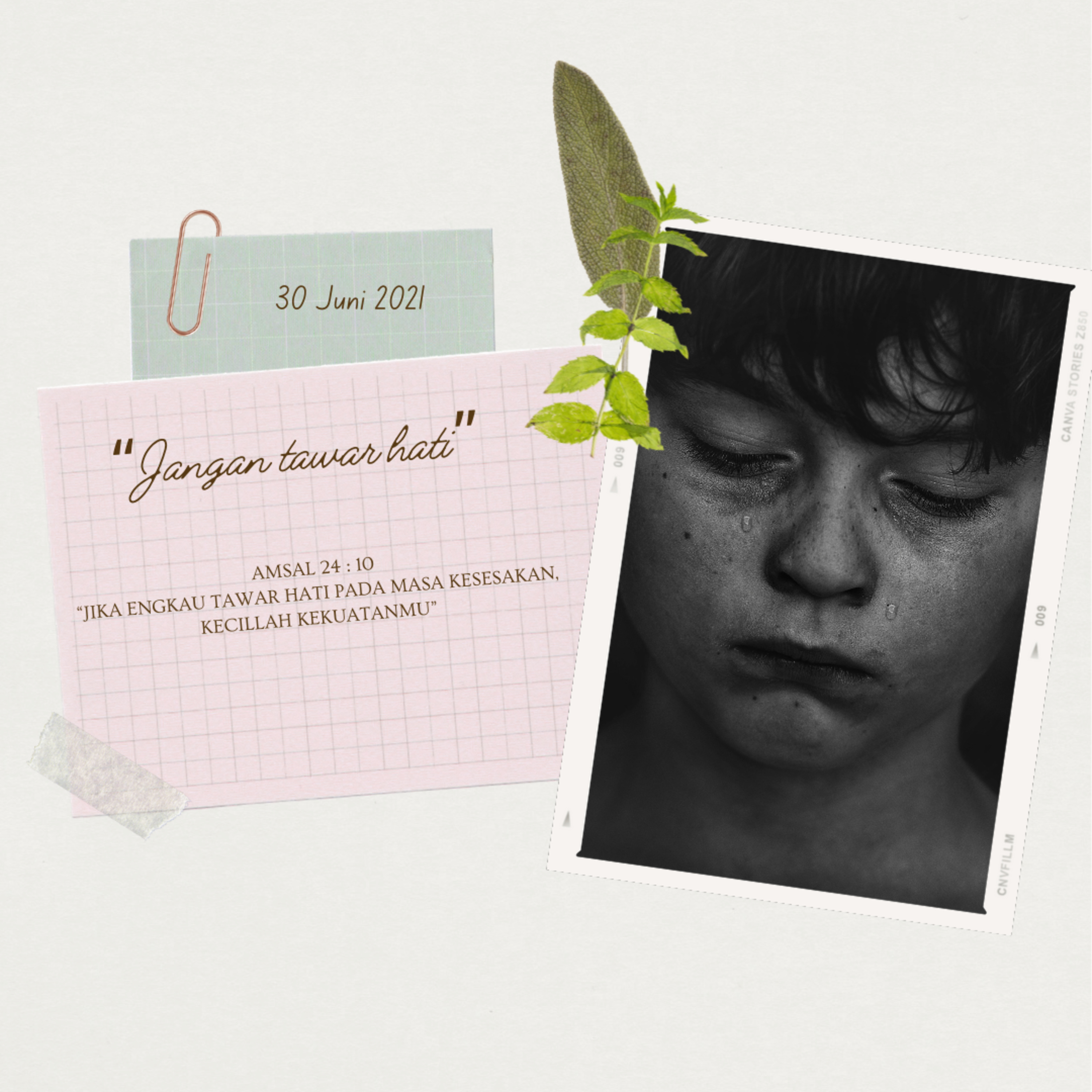 Setiap orang mungkin pernah mengalami apa yang disebut dengan tawar hati, terlebih-lebih ketika mereka sedang diperhadapkan pada pergumulan yang berat. Tawar hati menunjuk pada suatu kondisi hati yang dilanda kekecewaan yang mendalam karena beratnya beban yang harus ditanggung oleh orang tersebut. Tawar hati inilah yang dapat mengakibatkan seseorang menjadi lemah, kehilangan semangat dan putus asa. Firman Tuhan saat ini mengingatkan kita akan bahaya jika tawar hati, bahwa jika kita tawar hati pada masa kesesakan, kecillah kekuatan kita. Kesesakan dan kesukaran bisa datang kapan saja, untuk itu kita harus senantiasa datang kepada Tuhan, karena hanya Dialah yang akan memberikan kekuatan dan kelegaan kepada kita. Obat untuk tawar hati itu adalah selalu respek kepada Tuhan sebab kita akan menerima hikmat dari Tuhan. Orang yang berjalan dengan hikmat Tuhan adalah merupakan orang yang sedang berjalan dalam pimpinan Tuhan, maka masa depannya ada didalam Tuhan, sebab bagaimana mungkin Tuhan akan menelantarkan orang yang mau berjalan bersamaNya? Untuk itu janganlah tawar hati, tetapi senantiasalah mengandalkan dan menyerahkan kepada Tuhan segala jalan hidup kita, maka Tuhan akan menunjukkan solusi hidup bagi kita.
