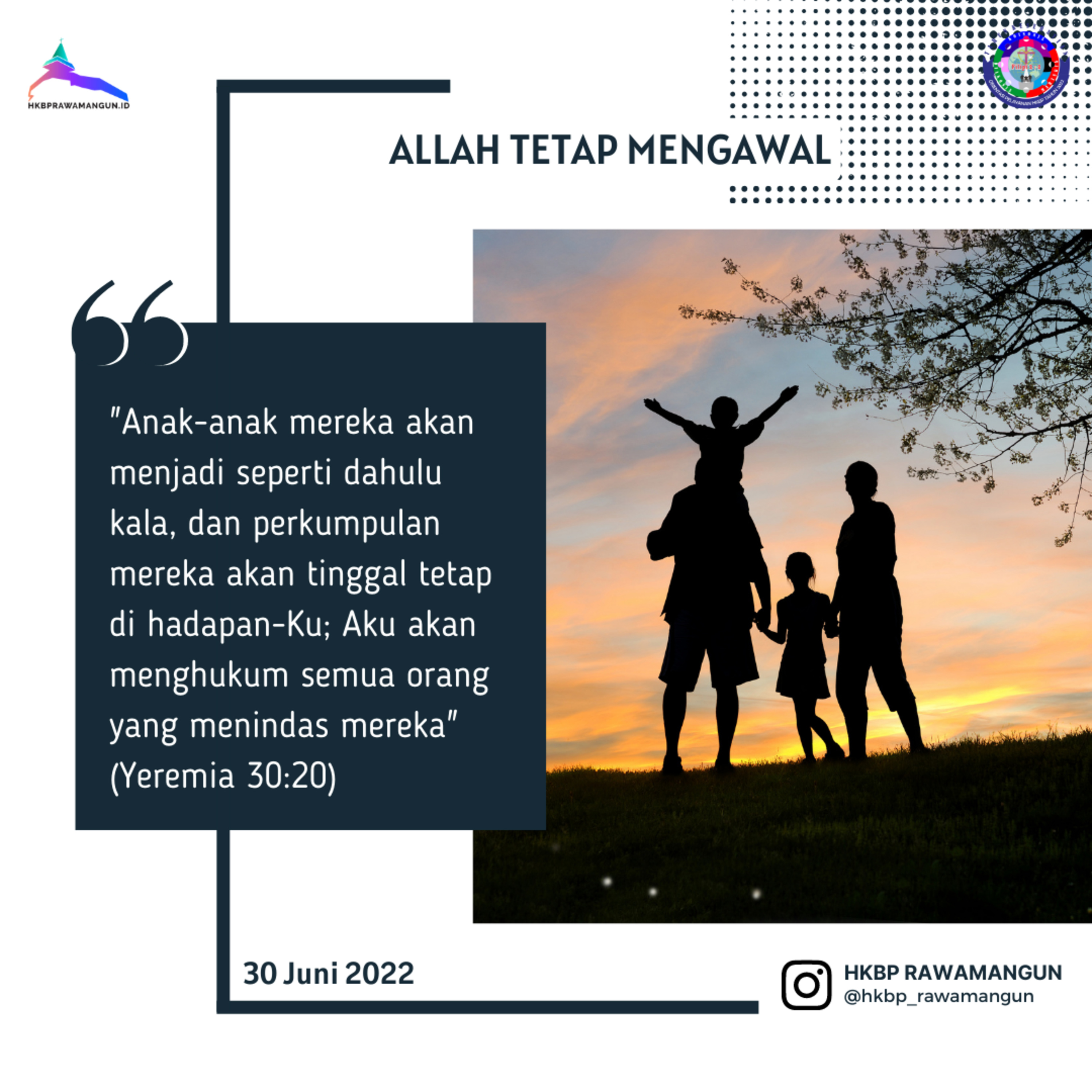 "Anak-anak mereka akan menjadi seperti dahulu kala, dan perkumpulan mereka akan tinggal tetap di hadapan-Ku; Aku akan menghukum semua orang yang menindas mereka" (Yeremia 30:20)