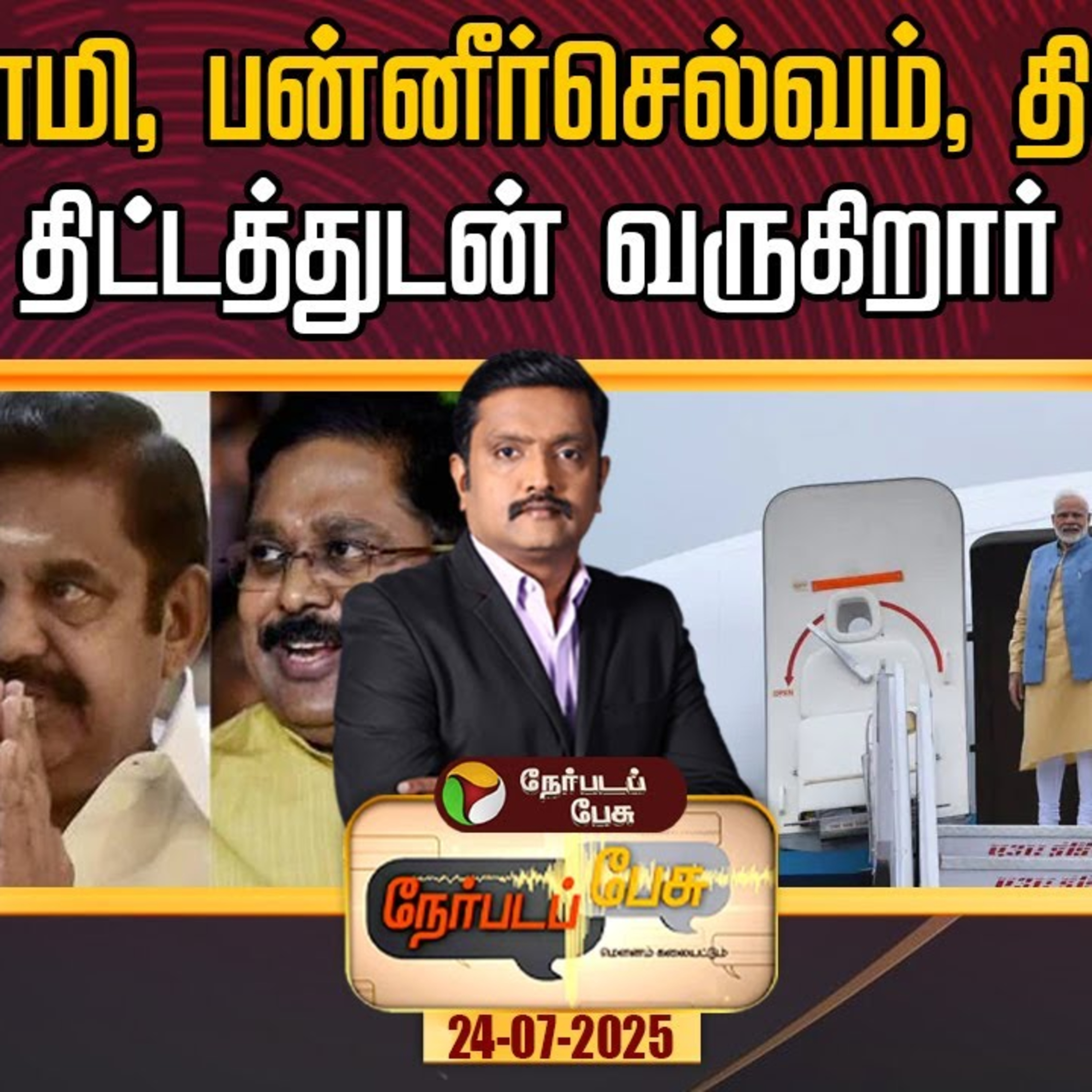 Nerpadapesu | மோடி சந்திப்புக்காக பயணத்தை ஒத்திவைத்திருக்கும்பழனிசாமி... தனித்தே ஆட்சி என்று மீண்டும் திட்டவட்டம்மோடியின் வருகையை ஒட்டி அடுத்தகட்ட முடிவுக்குதிட்டமிடும் பன்னீர்செல்வம், தினகரன்பழனிசாமி, பன்னீர்செல்வம், தினகரன்:என்ன திட்டத்துடன் வருகிறார் மோடி?