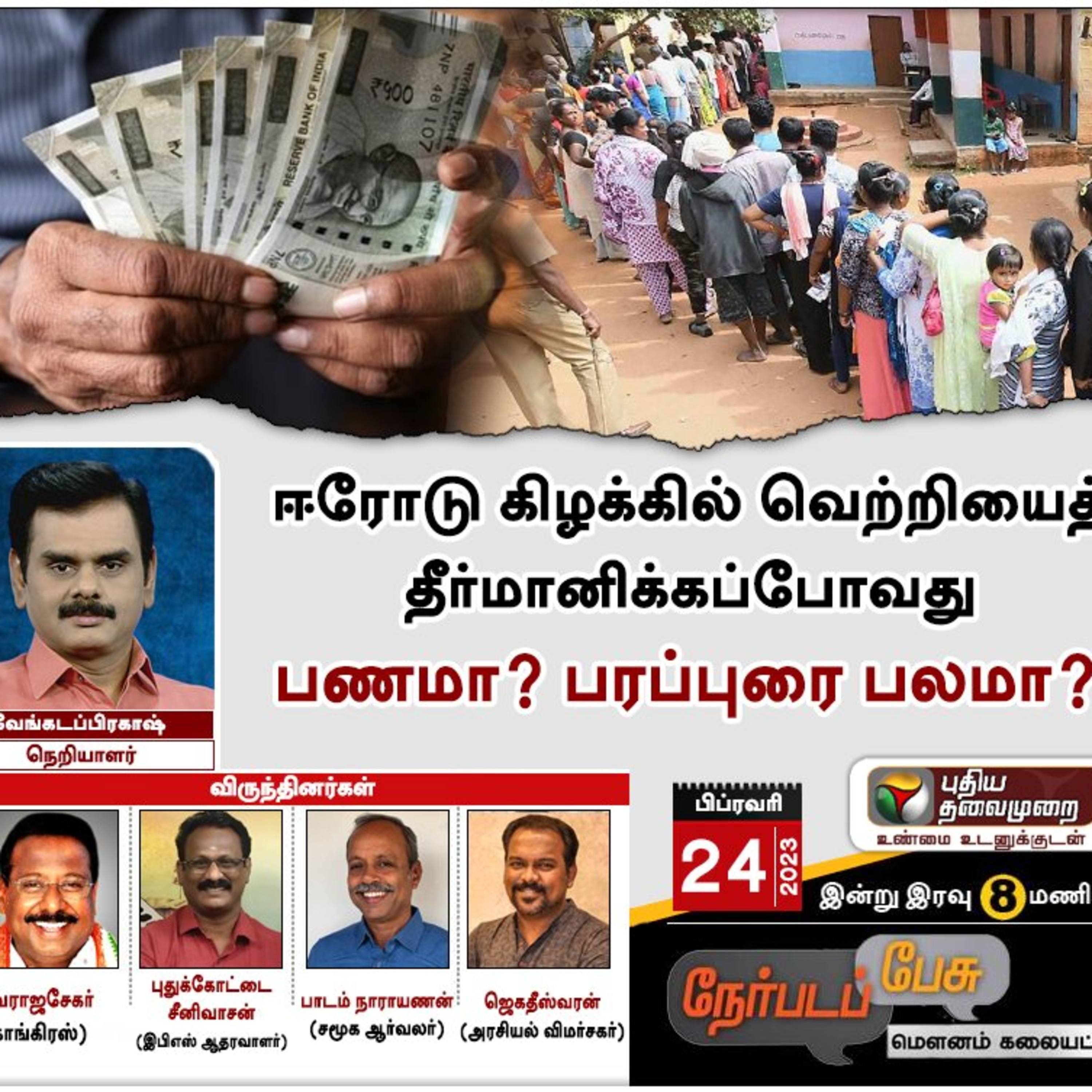 Nerpadapesu: ஈரோடு கிழக்கில் வெற்றியைத் தீர்மானிக்கப்போவது பணமா? பரப்புரை பலமா? | PTT (24.02.2023)