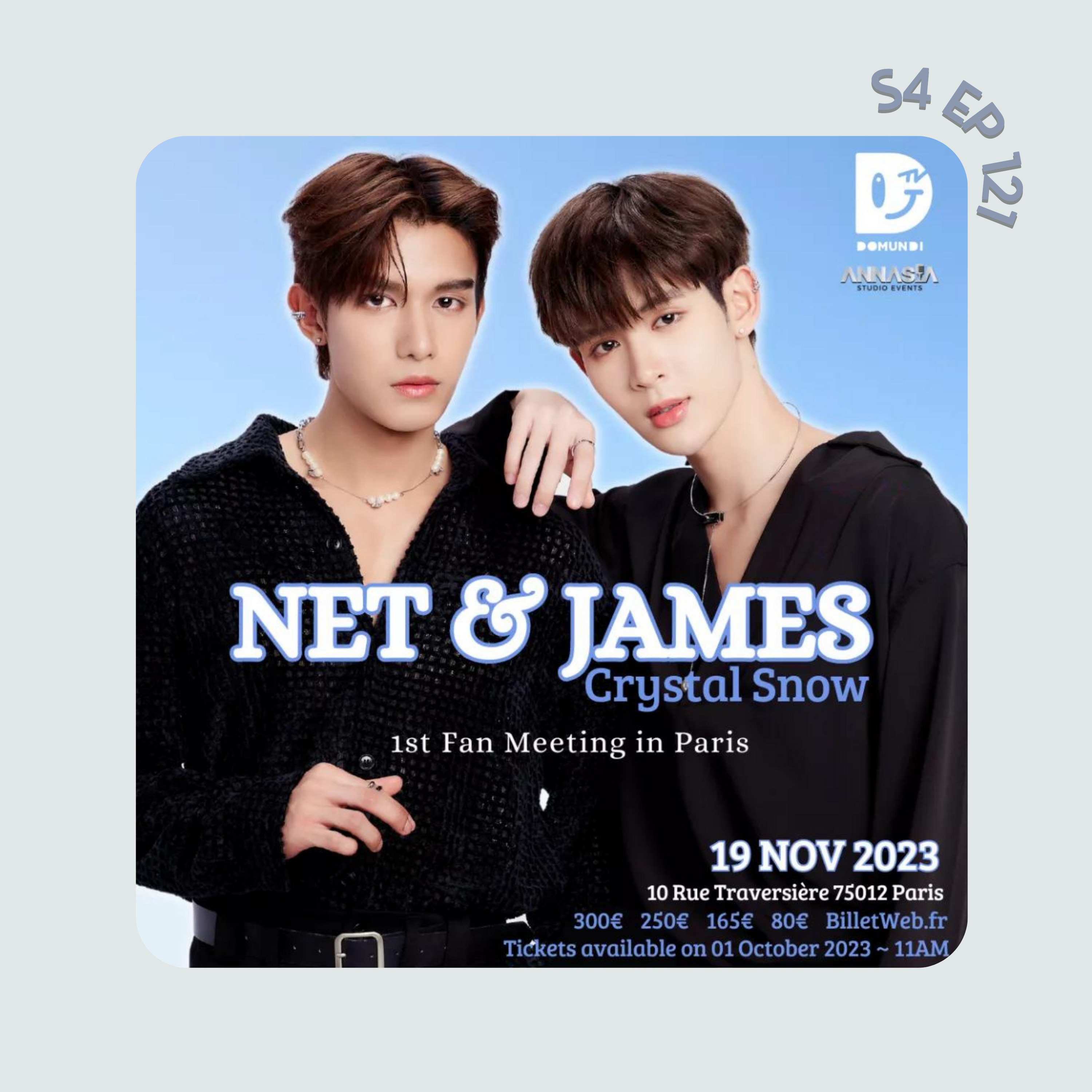 je suis de retours pour vous faire mon débriefing sur le fan meeting de Net et James qui a eu lieu a paris et qui a été organisé par Annasia Studio Events. J'espère que l'épisode va vous plaire !!