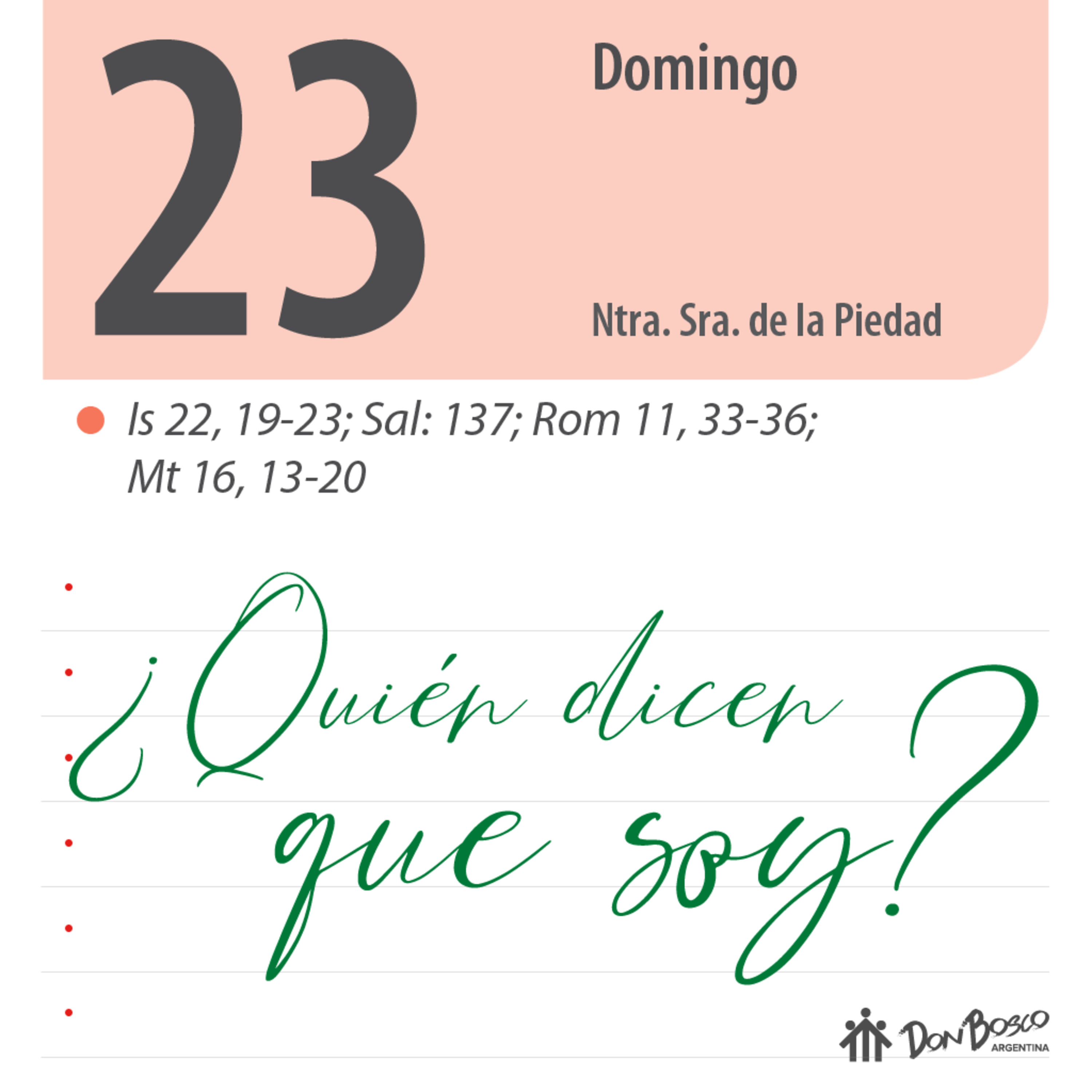 Mt. 16, 13-20 – “¿Quién decís que soy?”.