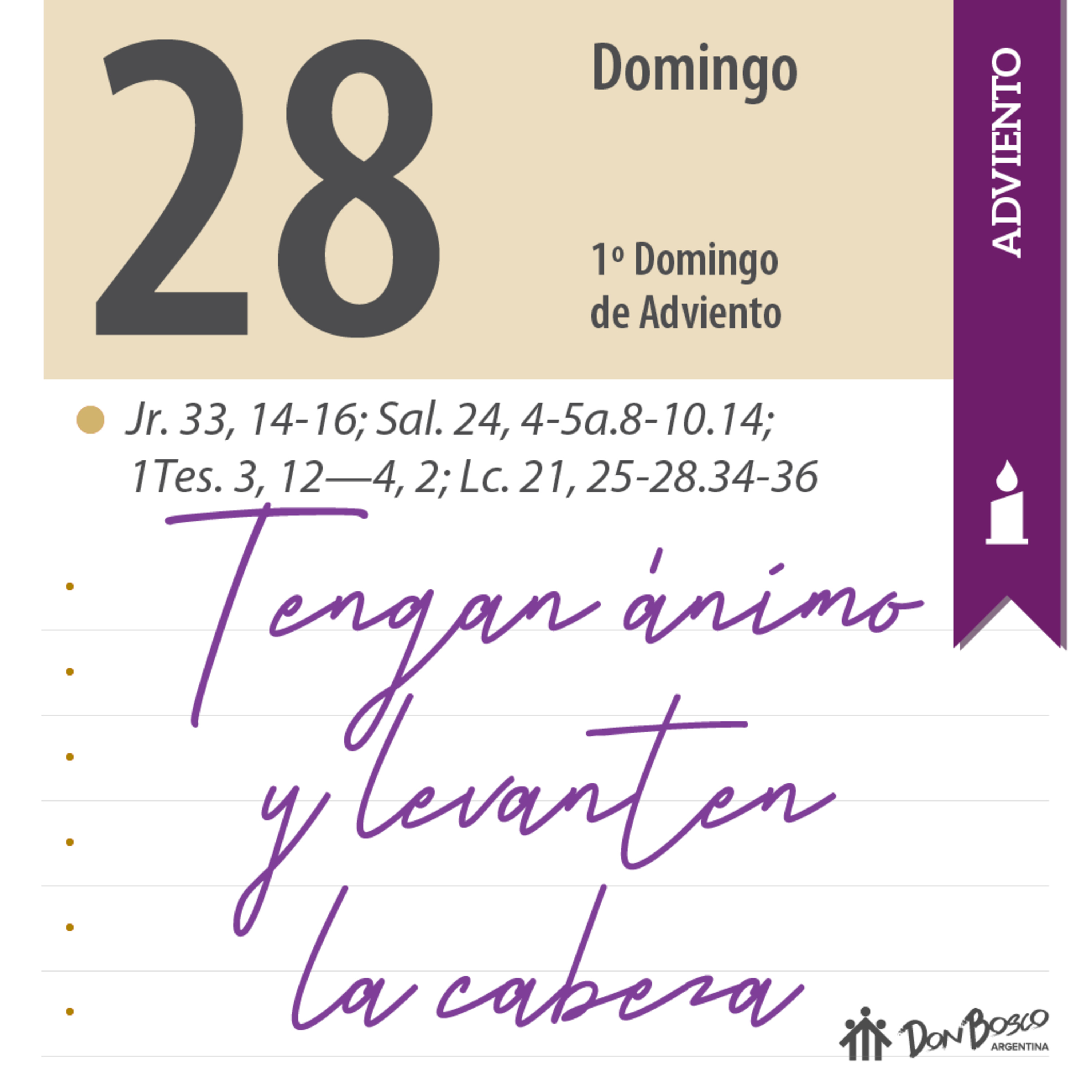 Comentario con reflexión salesiana del Evangelio Lc. 21, 25-28.34-36 - "Tengan ánimo y levanten la cabeza"