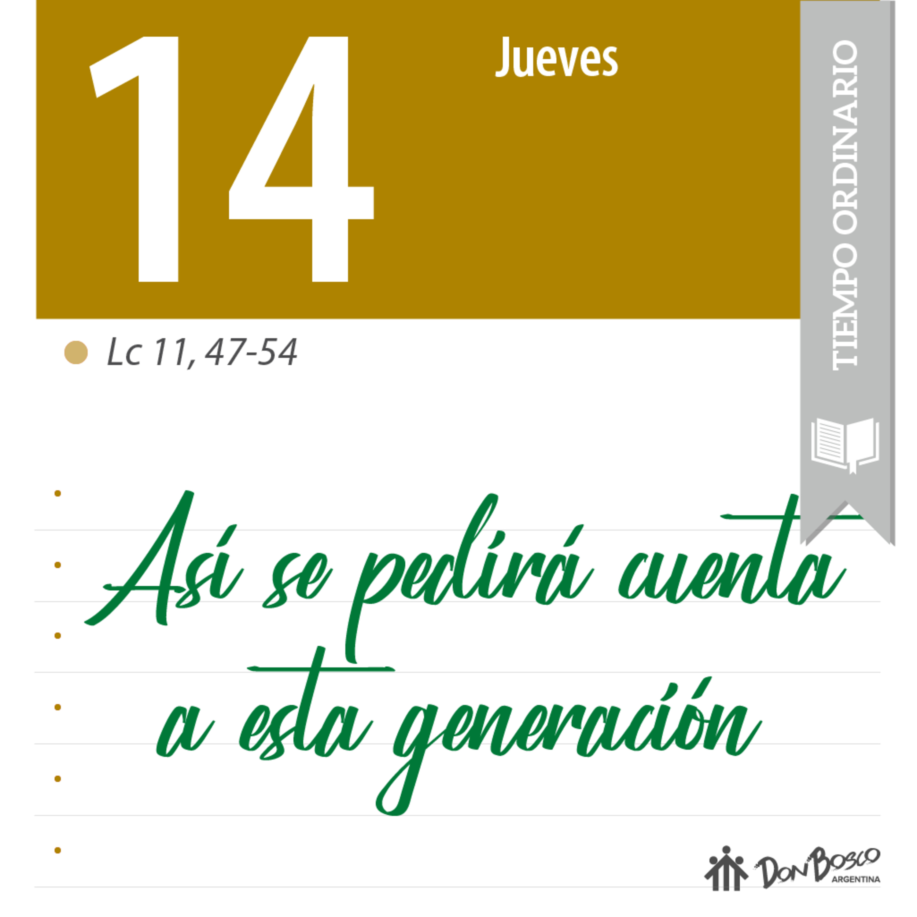 Comentario con reflexión salesiana del Evangelio Lc. 11, 47-54 - "Así se pedirá cuenta a esta generación"
