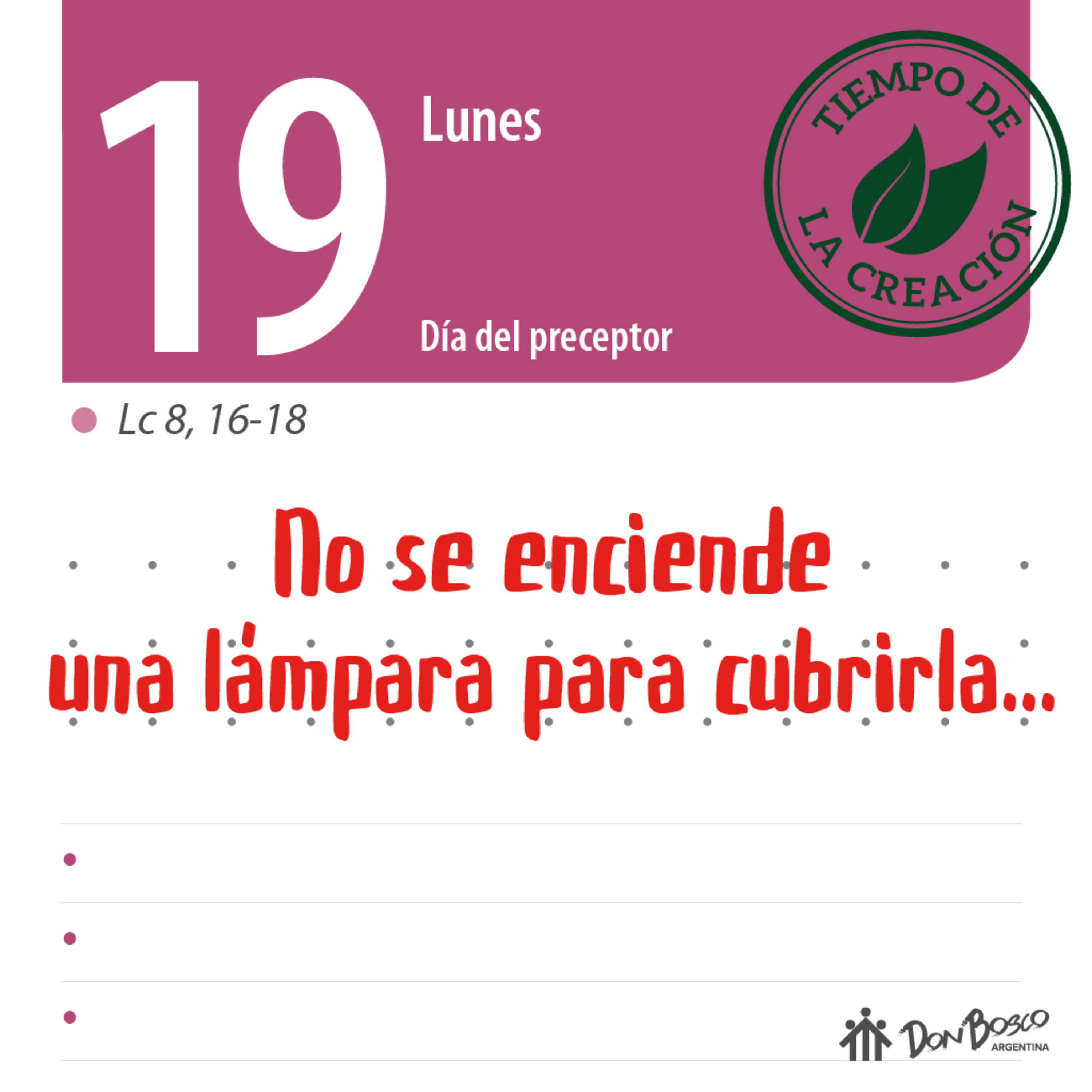 Comentario con reflexión salesiana del Evangelio Lc 8, 16-18 - "No se enciende una lámpara para cubrirla"