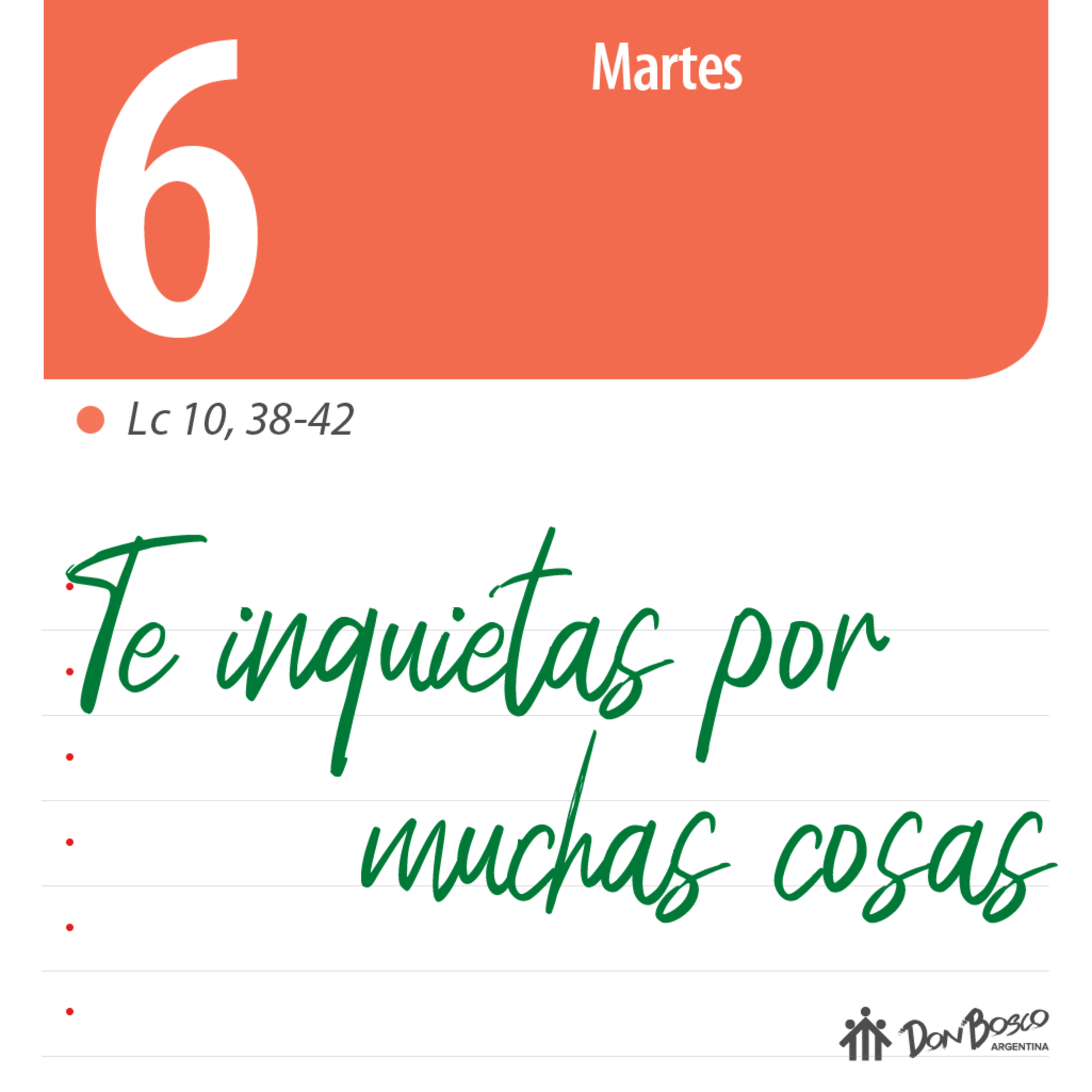 Lucas 10,38-42 - “Te inquietas por muchas cosas”.