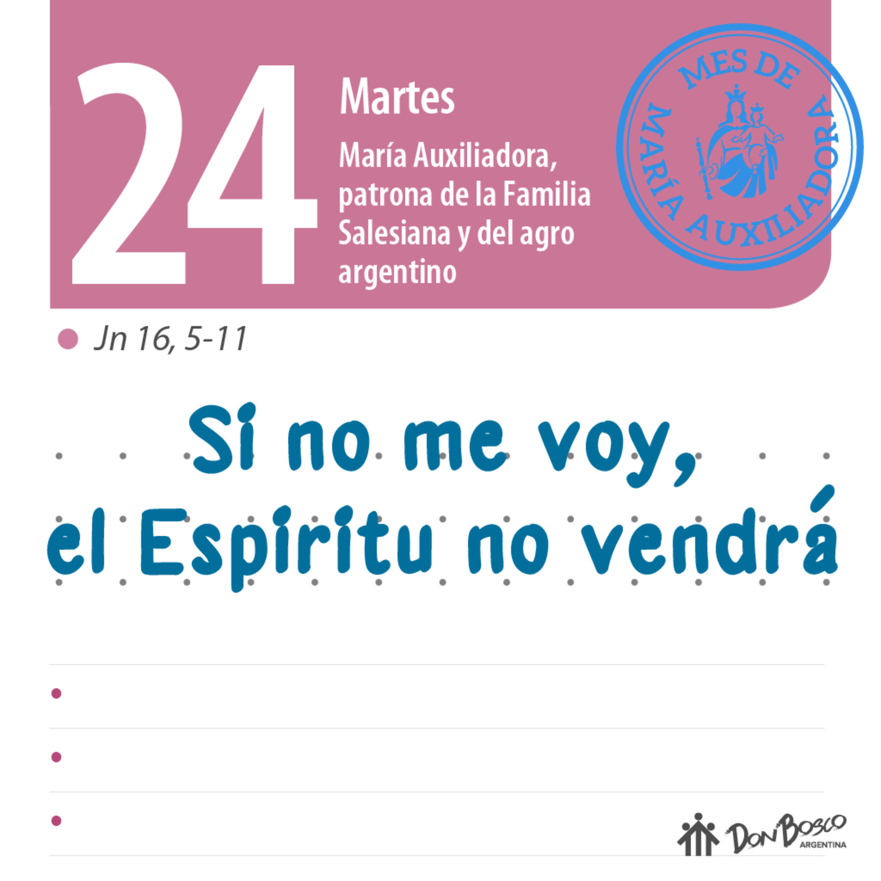 Comentario con reflexión salesiana del Evangelio Jn. 16, 5-11 - "Si no me voy, el Espíritu no vendrá"