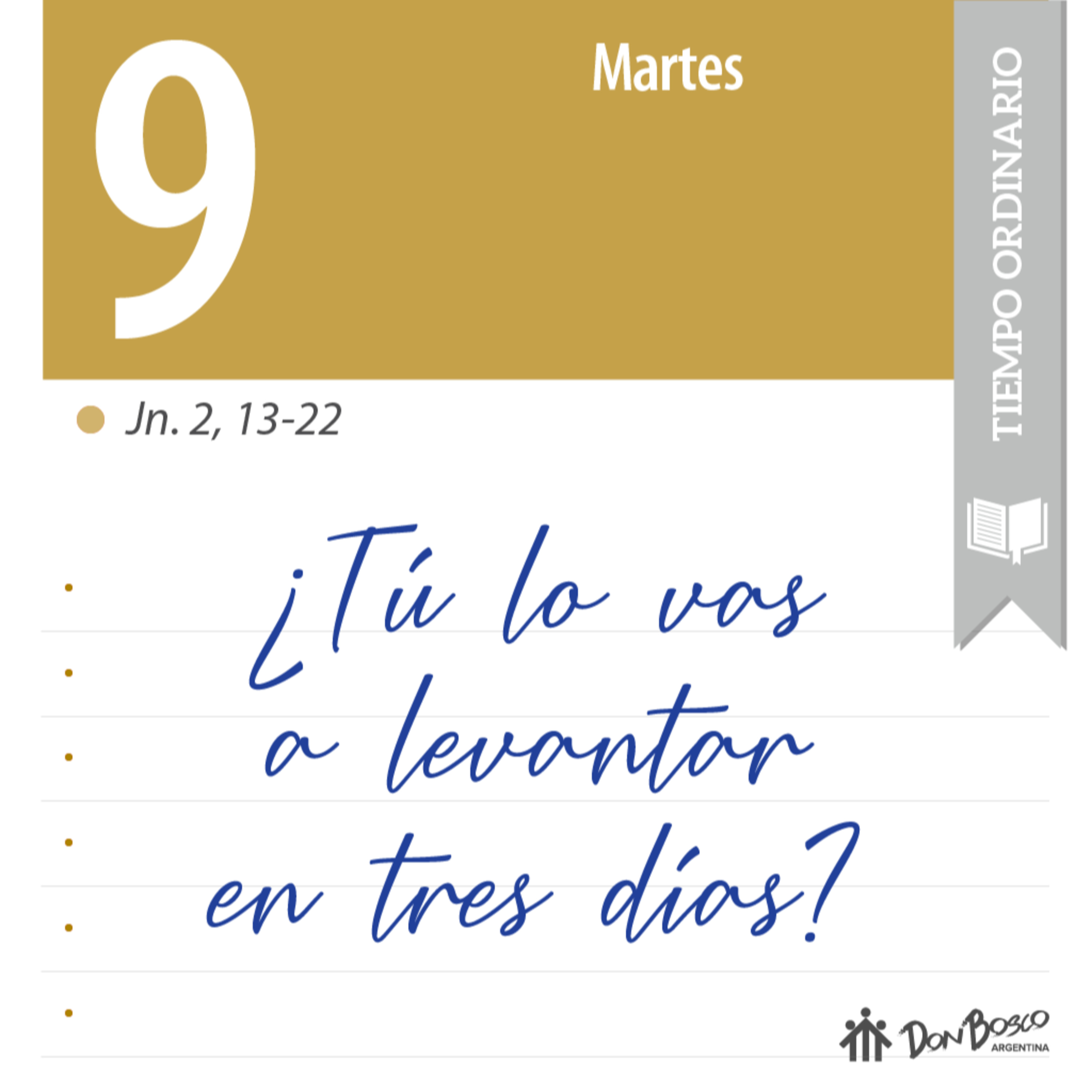 Comentario con reflexión salesiana del Evangelio Jn. 2, 13-22 - "¿Tu lo vas a levantar en tres días?"
