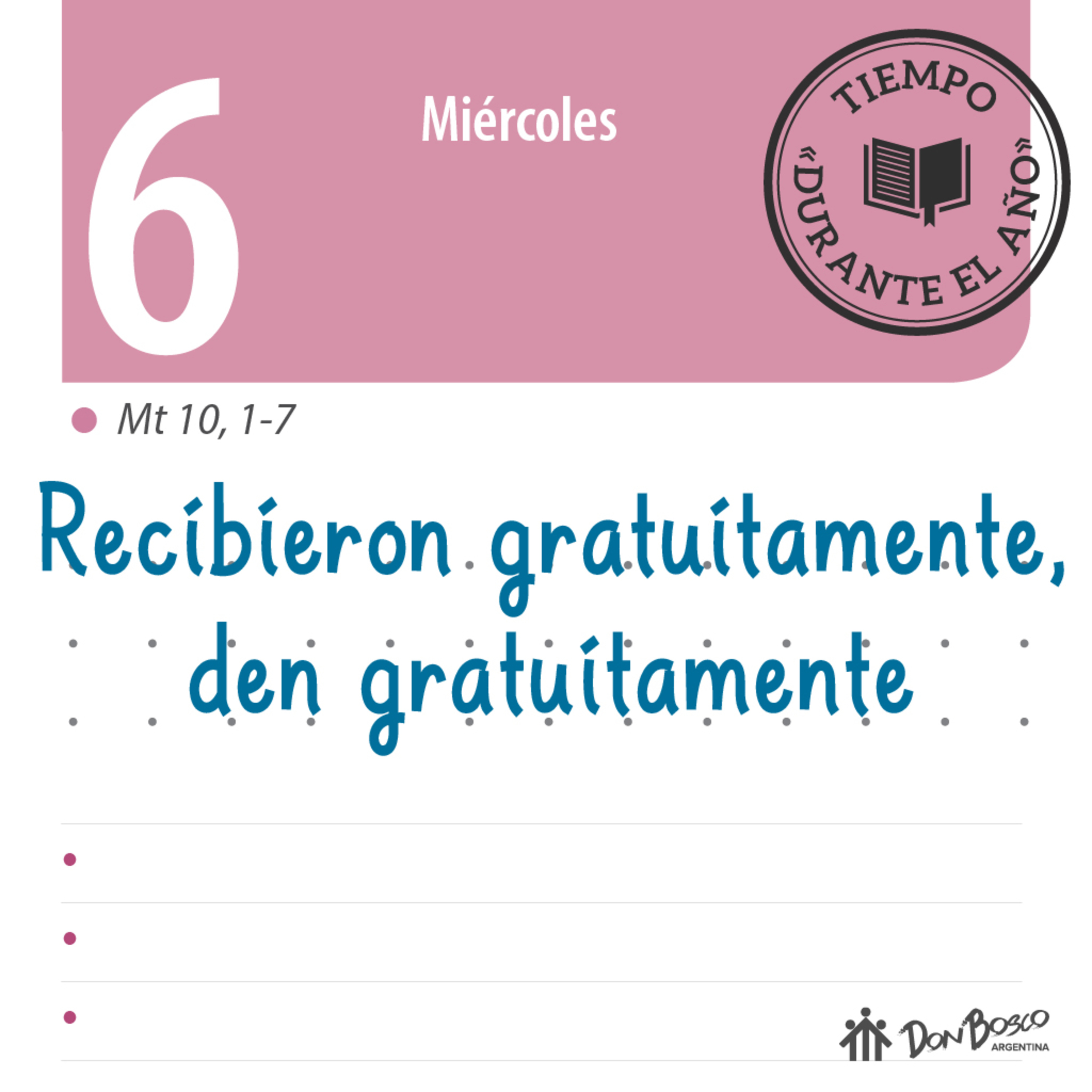 Comentario con reflexión salesiana del Evangelio Mt 10, 1-7 "Recibieron gratuitamente, den gratuitamente".