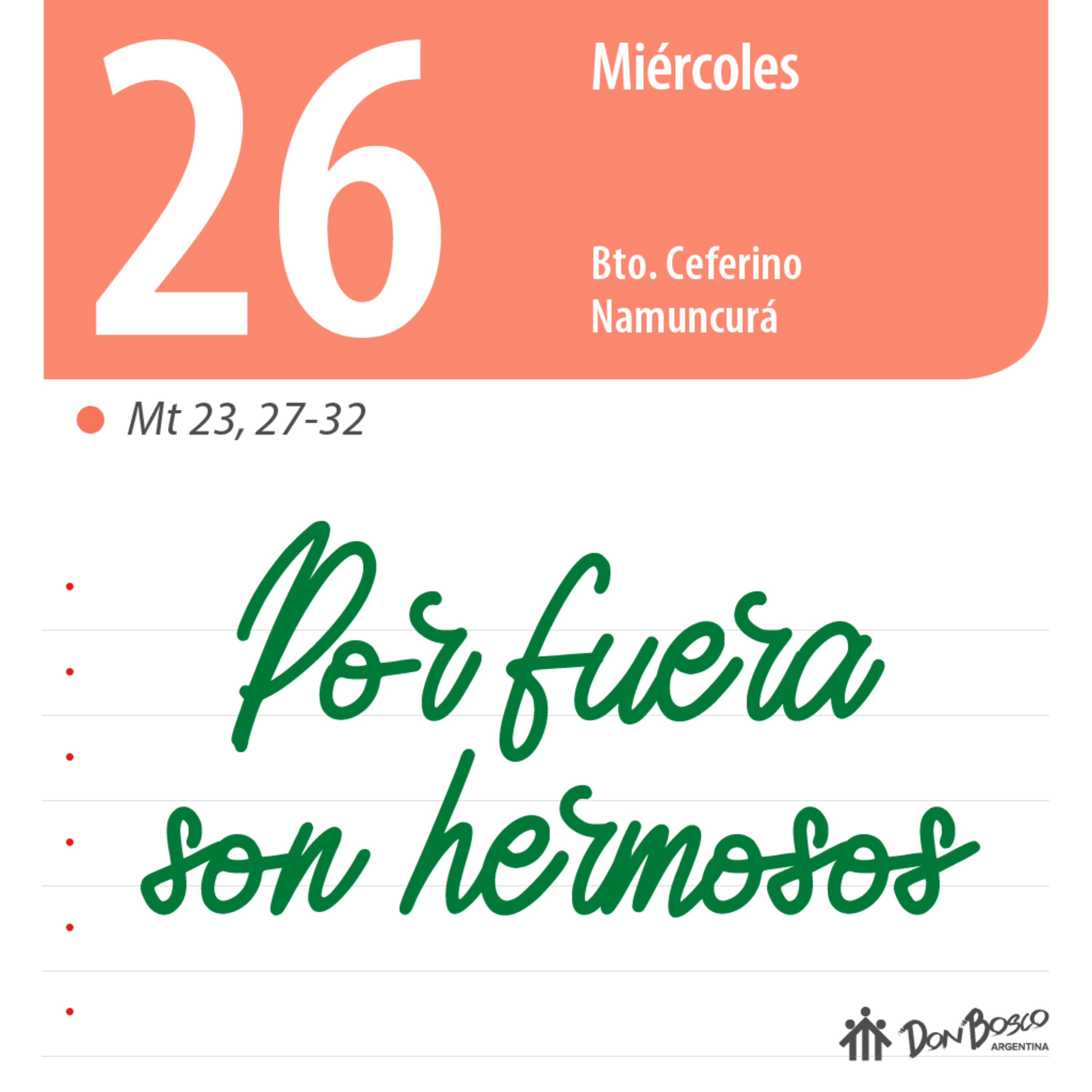 Mt. 23, 27-32 – “Por fuera son hermosos”.
