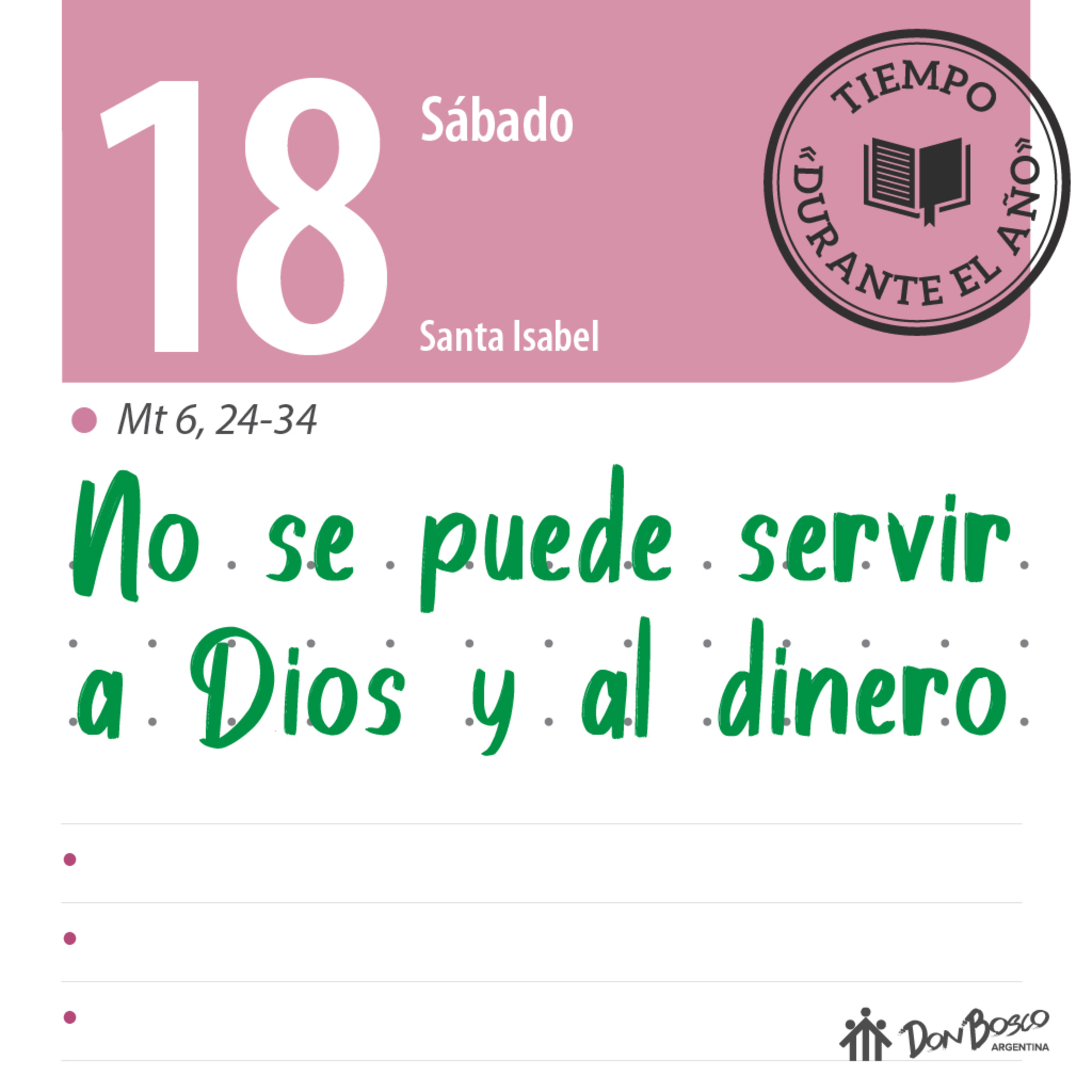 Comentario con reflexión salesiana del Evangelio Mt. 6, 24-34 - "No se puede servir a Dios y al dinero"