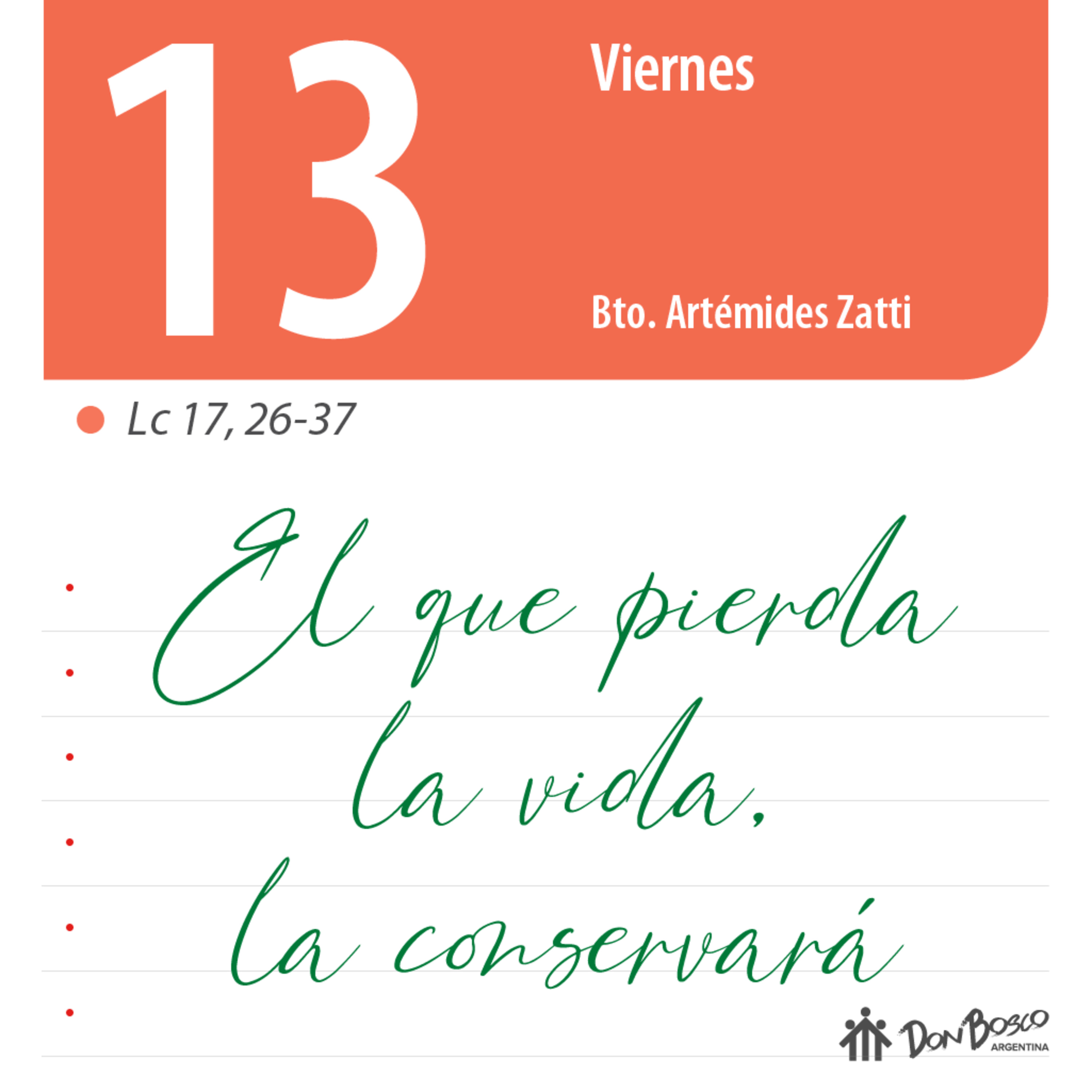 Comentario con reflexión salesiana al Evangelio - Lc. 17, 26-37 – “El que pierda la vida, la conservará”