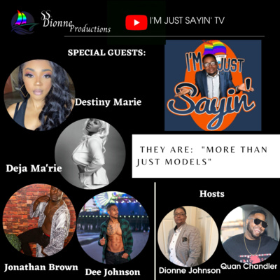 Host Dionne Johnson and Co-Host Big Homie Quan are excited about the guest on the show. The Models are coming in to talk with them about modeling, but most important each one of these models is an entrepreneur. Yes they are more than just Models. We have the lovely Tiffanie Holloway who is also working as a microblader and handling her own career.Deja Ma'rie is the CEO of her company and also a Hair Model she is also in entertainment. Dee Johnson aka "Don Leon is also a Recording Artist and songwriter. We also have Jonathan Brown who is an Athlete, but is strongly pursuing modeling. Last ,but certainly not least we have the lovely Destiny Marie who is a Bio Major and also a host for Dash Radio. Destiny is also published in Element Magazine. This is going to be a really fun ,but enlightening show. This is a show you should tune in to see. Please Go to YouTube "I'm Just Sayin TV ", subscribe and comment....I'm Just Sayin.. We are excited about the show!