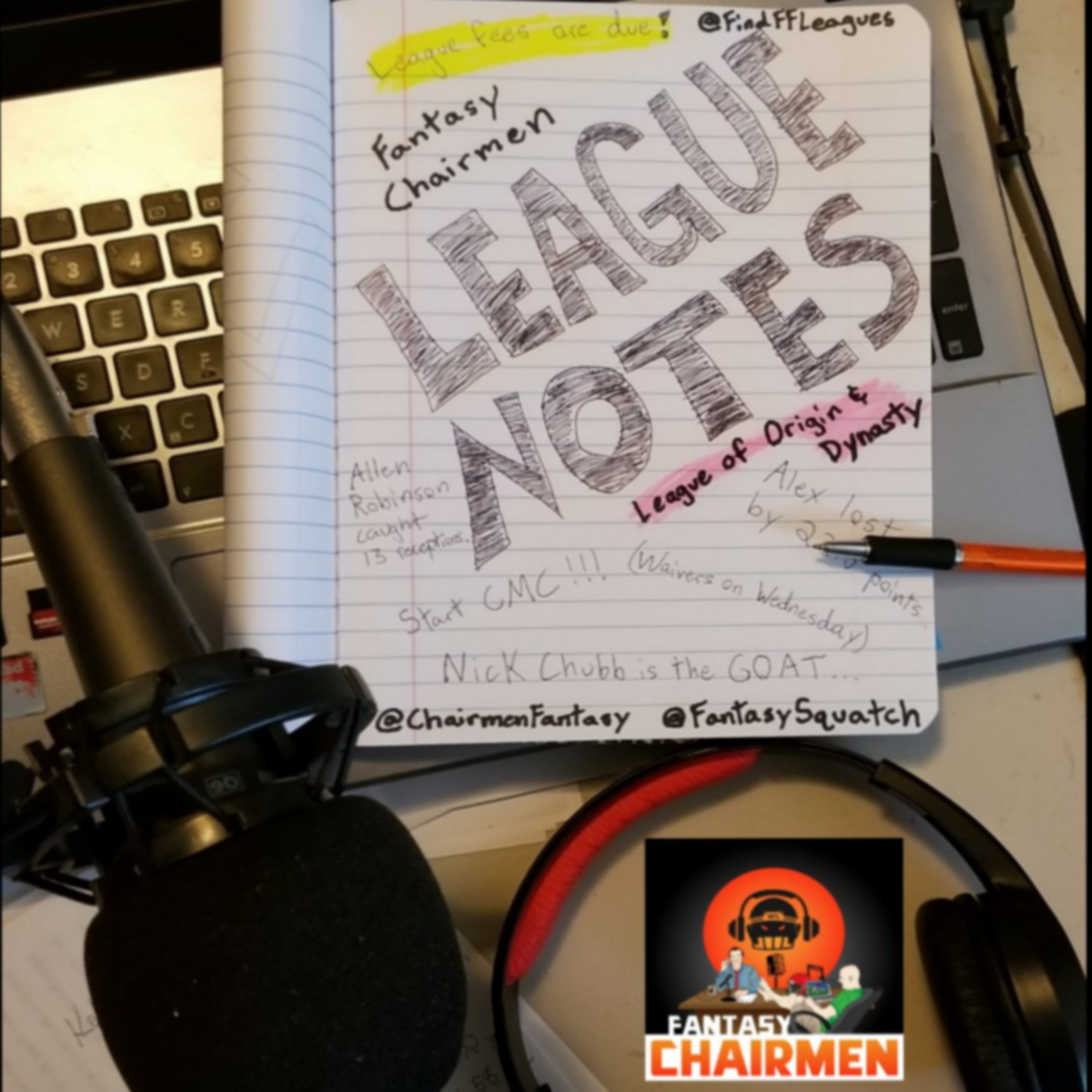 Welcome to the League Notes for the Fantasy Chairmen League of Origin and the Fantasy Chairmen Dynasty League! In these episodes, you will get to hear all the inner workings of the two main leagues of the Fantasy Chairmen and the Fantasy Sasquatch. Feel free to join us as we cover match ups between our league-mates, recap the scores of those same match ups and cover some of the major score swings that took place over the week, review some of the biggest moves made in both leagues, and, of course, talk trash to our opponents in the leagues as well.