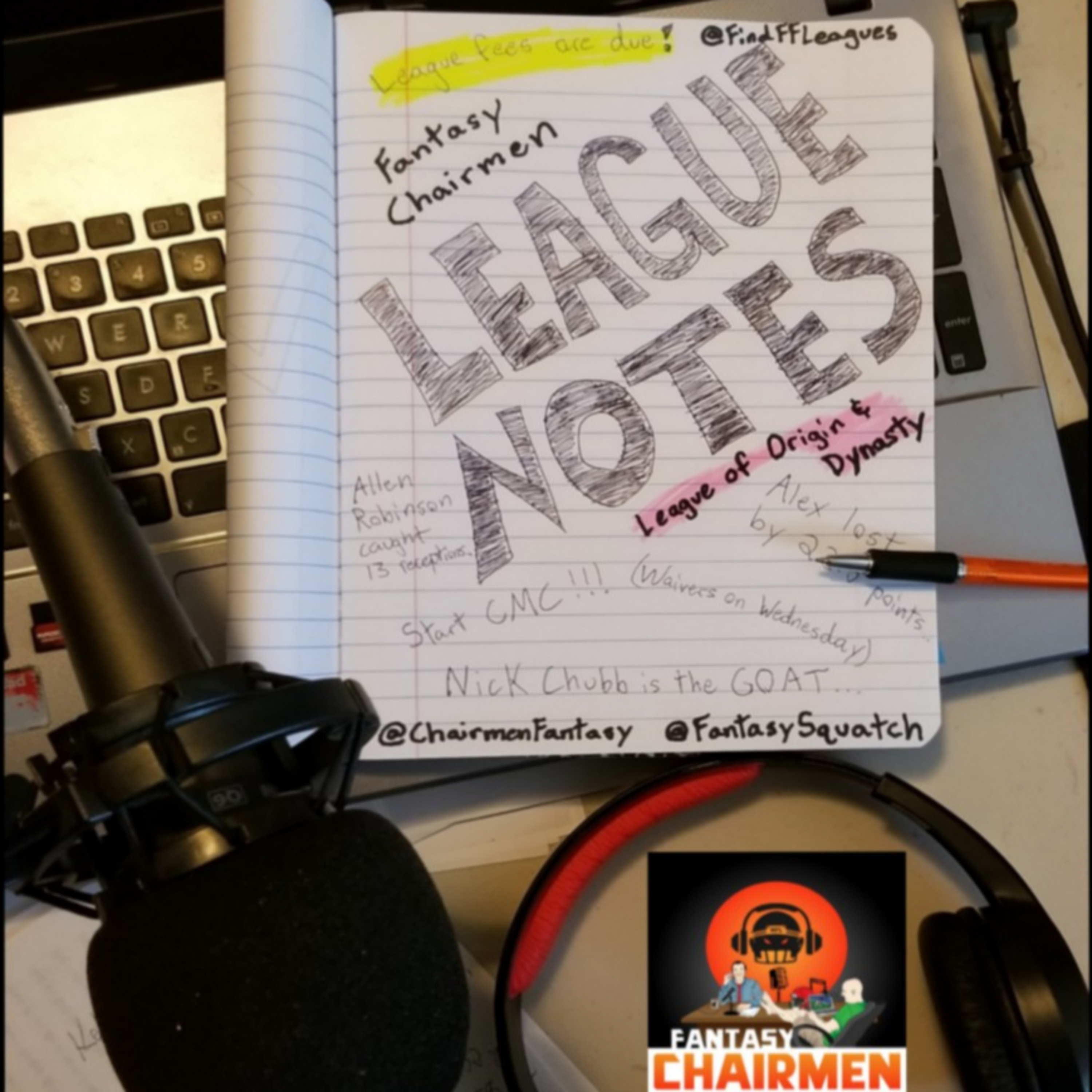 Welcome to the League Notes for the Fantasy Chairmen League of Origin and the Fantasy Chairmen Dynasty League! In these episodes, you will get to hear all the inner workings of the two main leagues of the Fantasy Chairmen and the Fantasy Sasquatch. Feel free to join us as we cover match ups between our league-mates, recap the scores of those same match ups and cover some of the major score swings that took place over the week, review some of the biggest moves made in both leagues, and, of course, talk trash to our opponents in the leagues as well.
