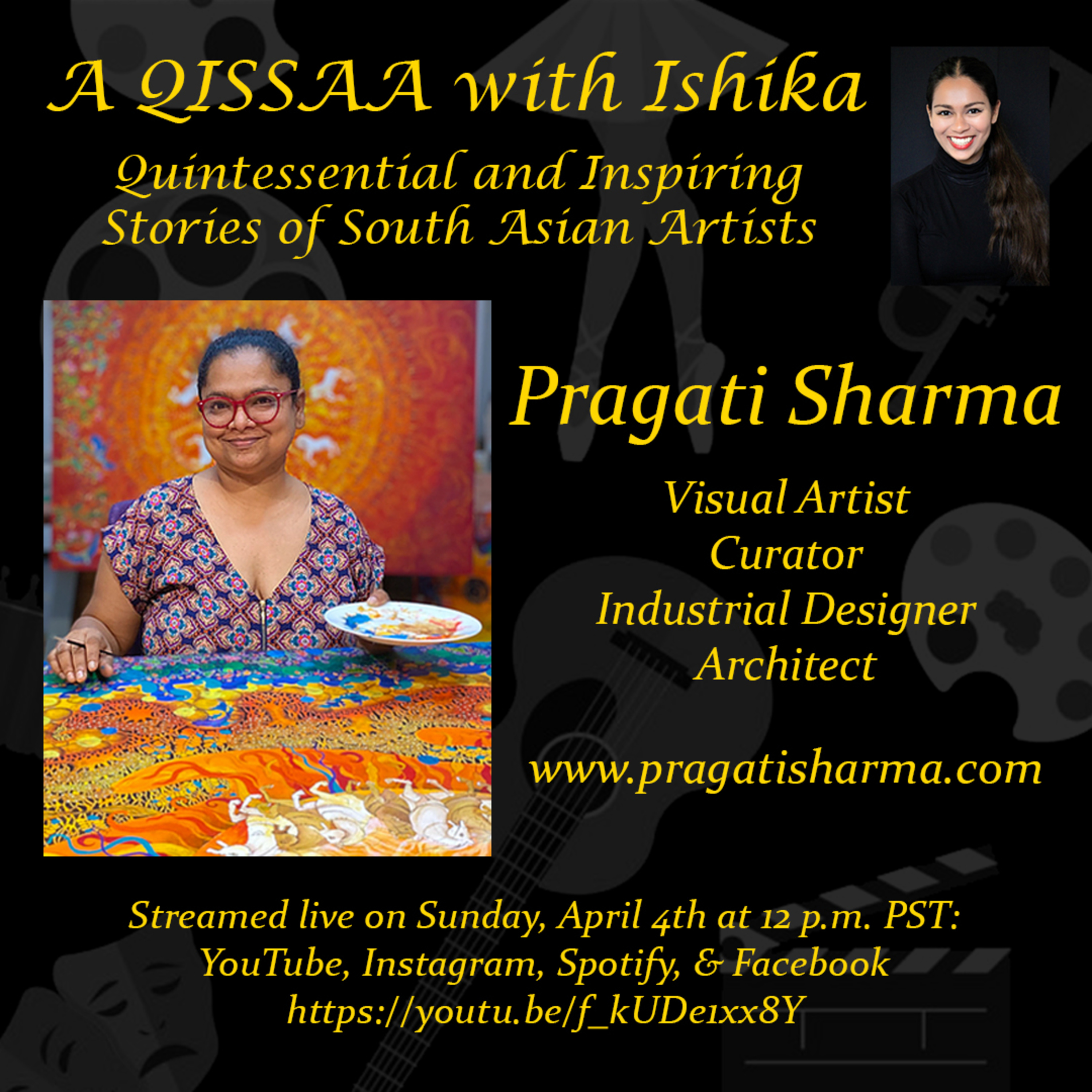 Welcome to A QISSAA with Ishika, Quintessential and Inspiring Stories of South Asian Artists! My guest today is Pragati Sharma, an artist, curator, industrial designer, architect, AND art educator! Pragati mixes fine arts, calligraphy, mythology, architecture, and spirituality in her artwork!! Born in India, Pragati Sharma has had the influence of many cultures and traditions. At a young age, she was recognized for her creativity and went on to pursue her Bachelors in Architecture and Masters in Product Design from THE National Institute of Design, NID Ahmedabad. Through her travel and work in Europe, she explored the synergy between art, design, and architecture. Her work features transparent layers of paint, using the principles of color, design, and visual balance to tell stories through visual art. Pragati is a multi-medium artist, working with music and performing arts along with her visual art to create multi-sensory experiences. Her art ranges from figures to landscapes to anthropomorphic design, paintings to sculptures, most of which you can find in her exhibitions. Her work has been displayed at a Habitat for Humanity public art Project in Vancouver, Canada, one of only 3 artists whose work was selected. Pragati’s work has also been showcased in New York City’s Times Square! She also has her own art school, called the Pragati Art School, where she teaches art workshops in-person and NOW virtually.