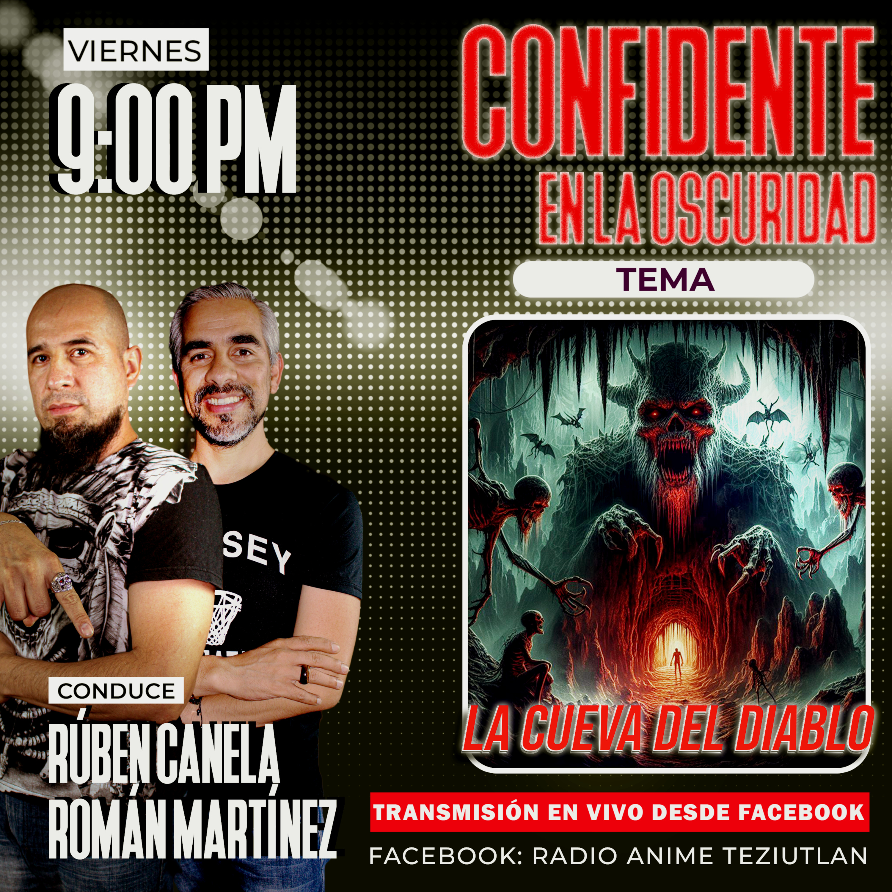 ¿Te atreves a adentrarte en lo desconocido? prepárate para una experiencia aterradora y llena de suspenso con "Confidente en la Oscuridad". En esta ocasión, nuestros valientes conductores, Rubén Canela y Román Martínez, te guiarán a través de los oscuros rincones de "La Cueva del Diablo".