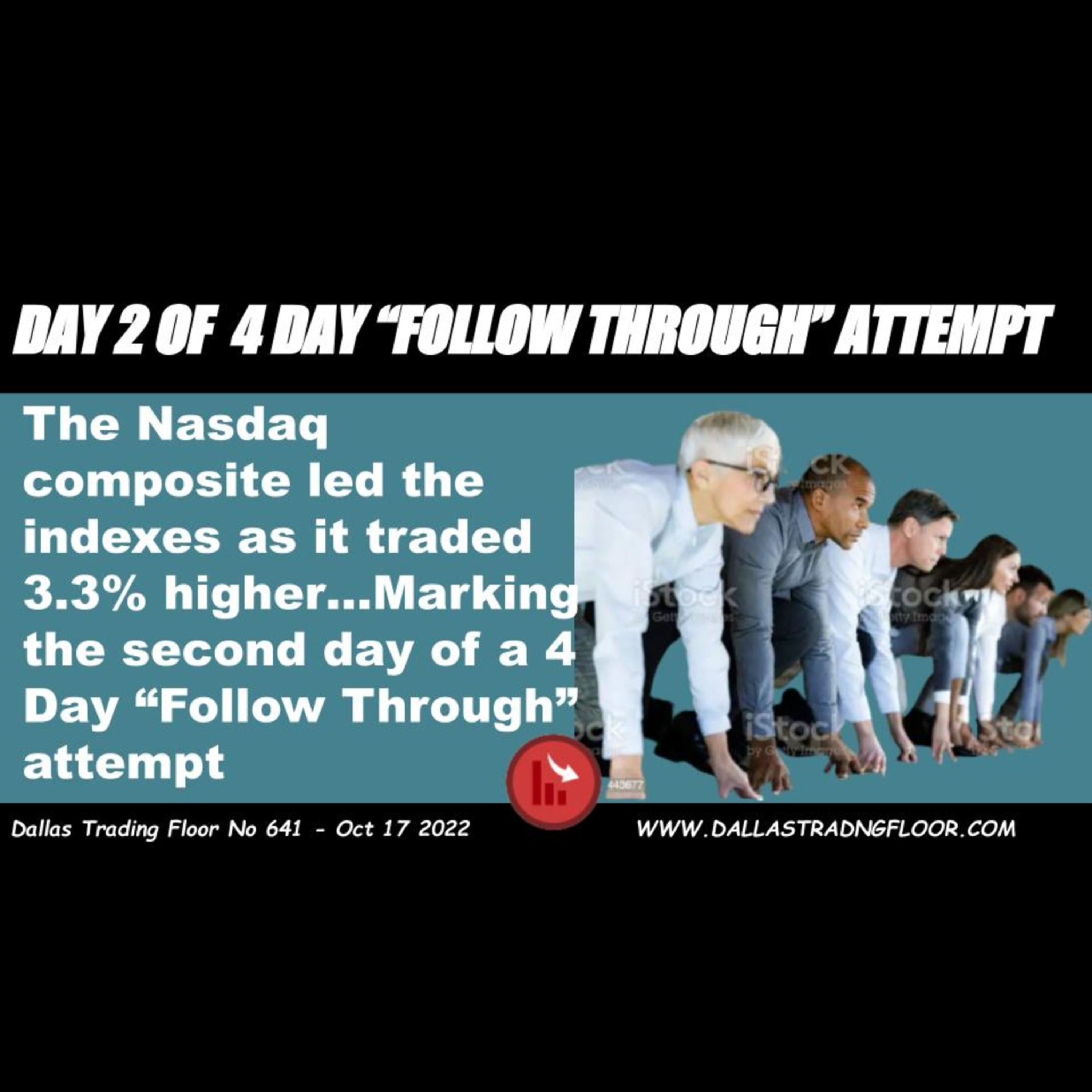 The Nasdaq composite led the indexes as it traded 3.3% higher…Marking the second day of a 4 Day “Follow Through” attempt