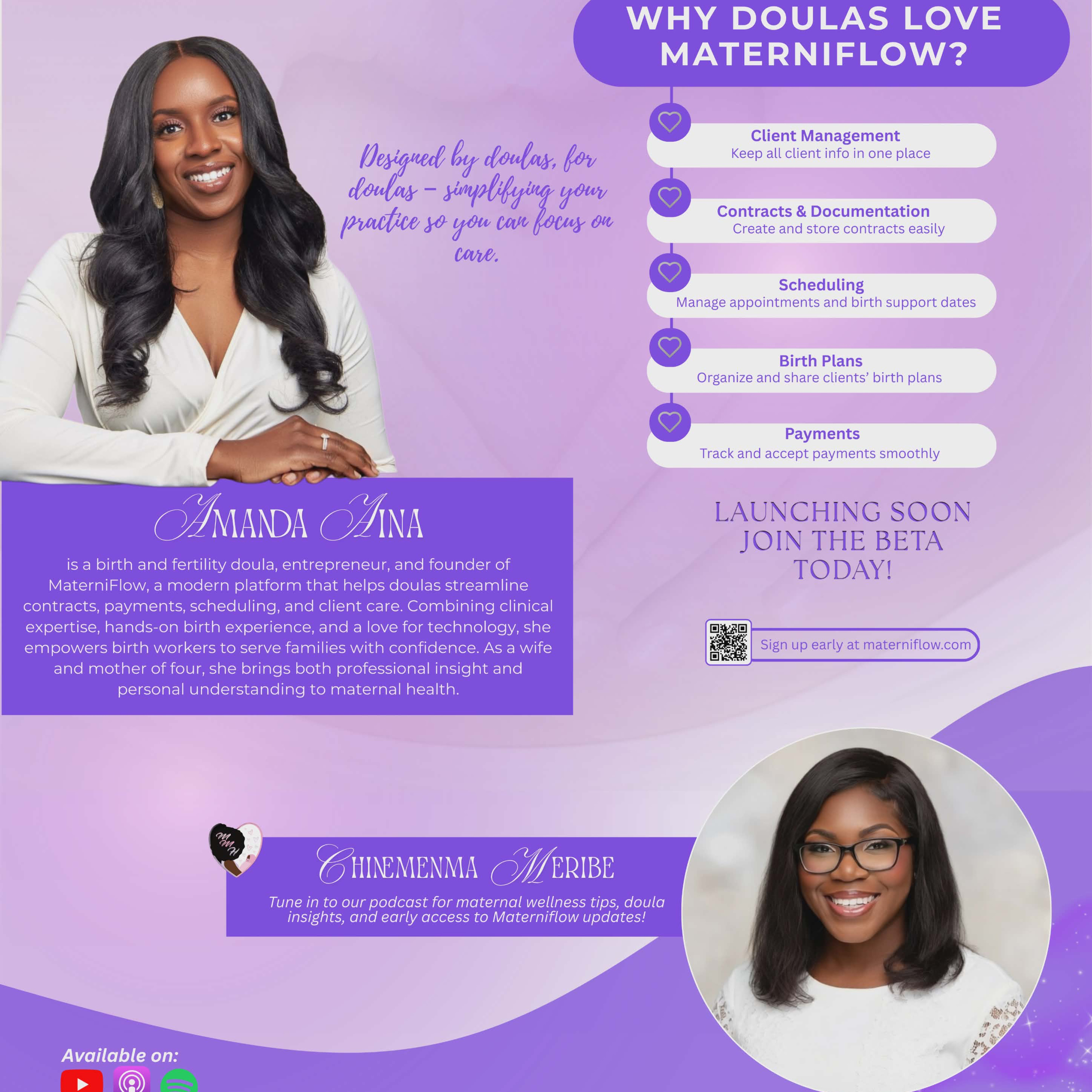 Amanda Aina is the founder/creator of MaterniFlow: a modern practice management platform designed by a doula specifically for doulas to streamline contracts, payments, scheduling, and client care. MMH is the FIRST to showcase this revolutionary platform, so tune in!