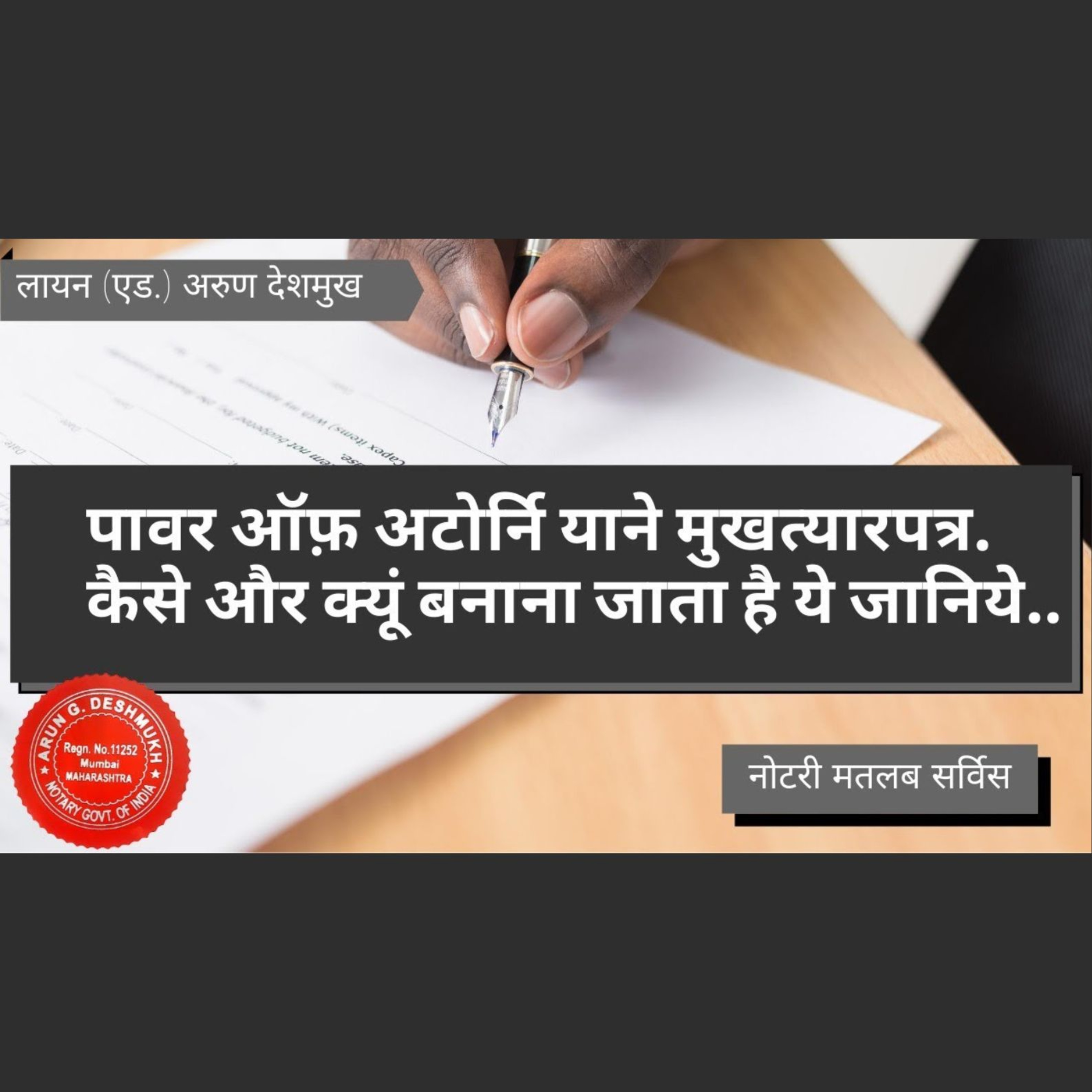 Lion adv Arun Deshmukh explaining in Hindi what is Power of Attorney its various mode and the requirements in regards to it