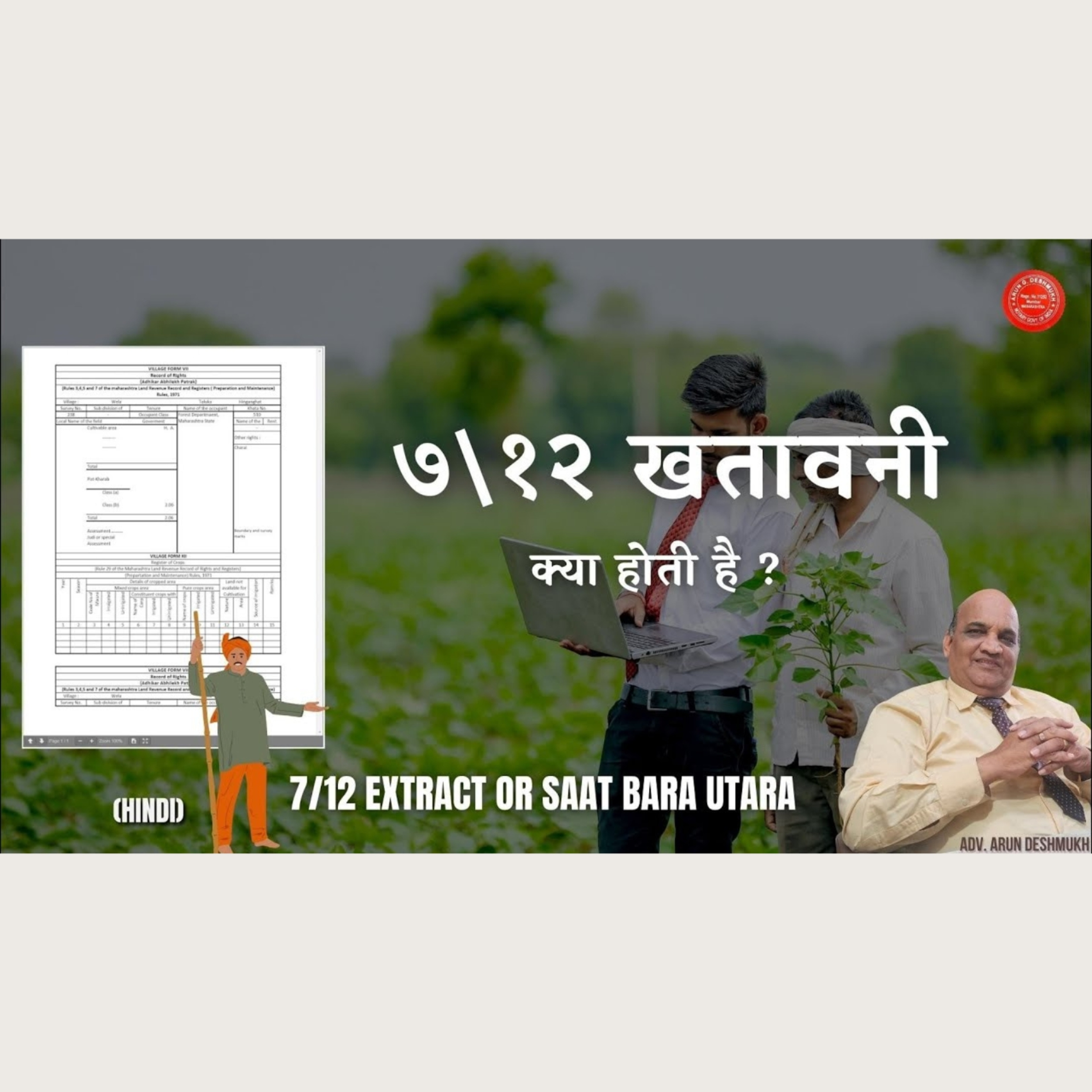 ७\१२ में क्या क्या बातों की जानकारी होती है और यह अलगसा नाम इसे कैसा मिला यह जानिए इस यूट्यूब व्हिडिओ द्वारा जो आपको बता रहे है आपके कानूनी सलाहगार लायन एड.अरुण देशमुख