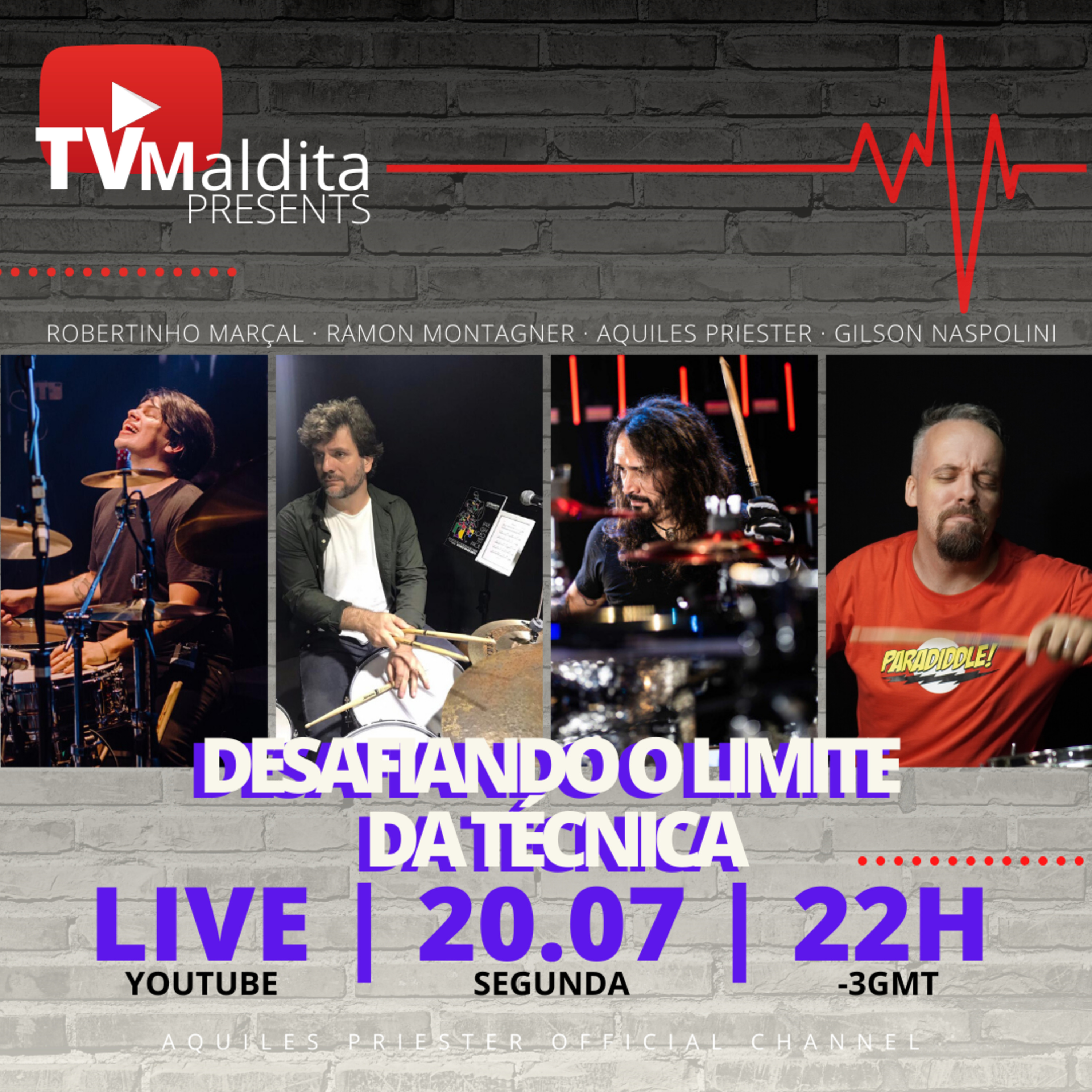 Aquiles Priester e Gilson Naspolini recebem os bateristas Robertinho Marçal e Ramon Montagner na TVMaldita.