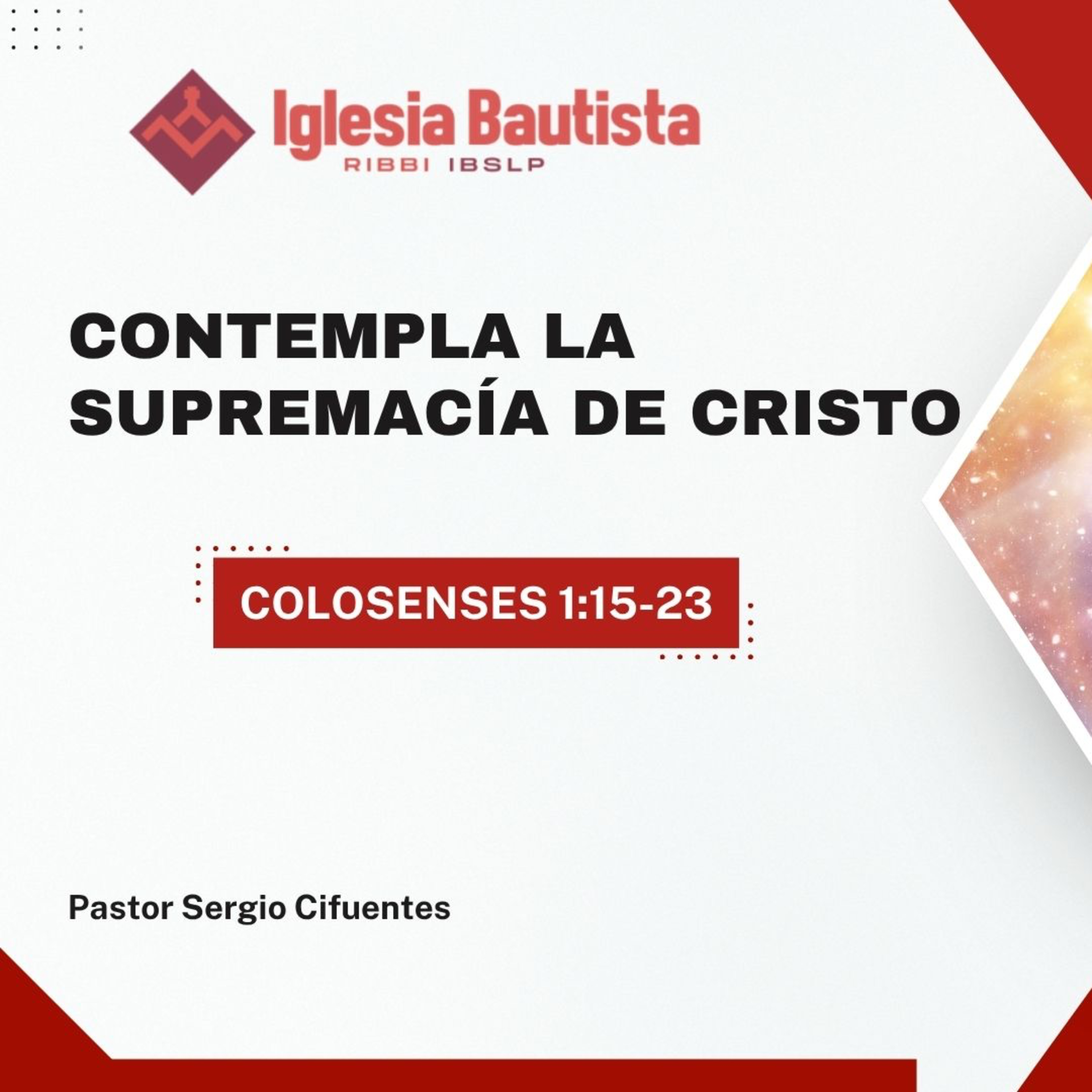 Exaltar la gloria de Cristo para que no busquemos sustitutos ni añadiduras a su persona o a su obra, sino que permanezcamos firmes en sus caminos.Predicado por el Pastor Sergio Cifuentes en el auditorio de la Iglesia Bautista de San Luis Potosi (IBSLP) la mañana del domingo 29 de junio 2025.Oramos que el mensaje sea de edificación a tu vida!
