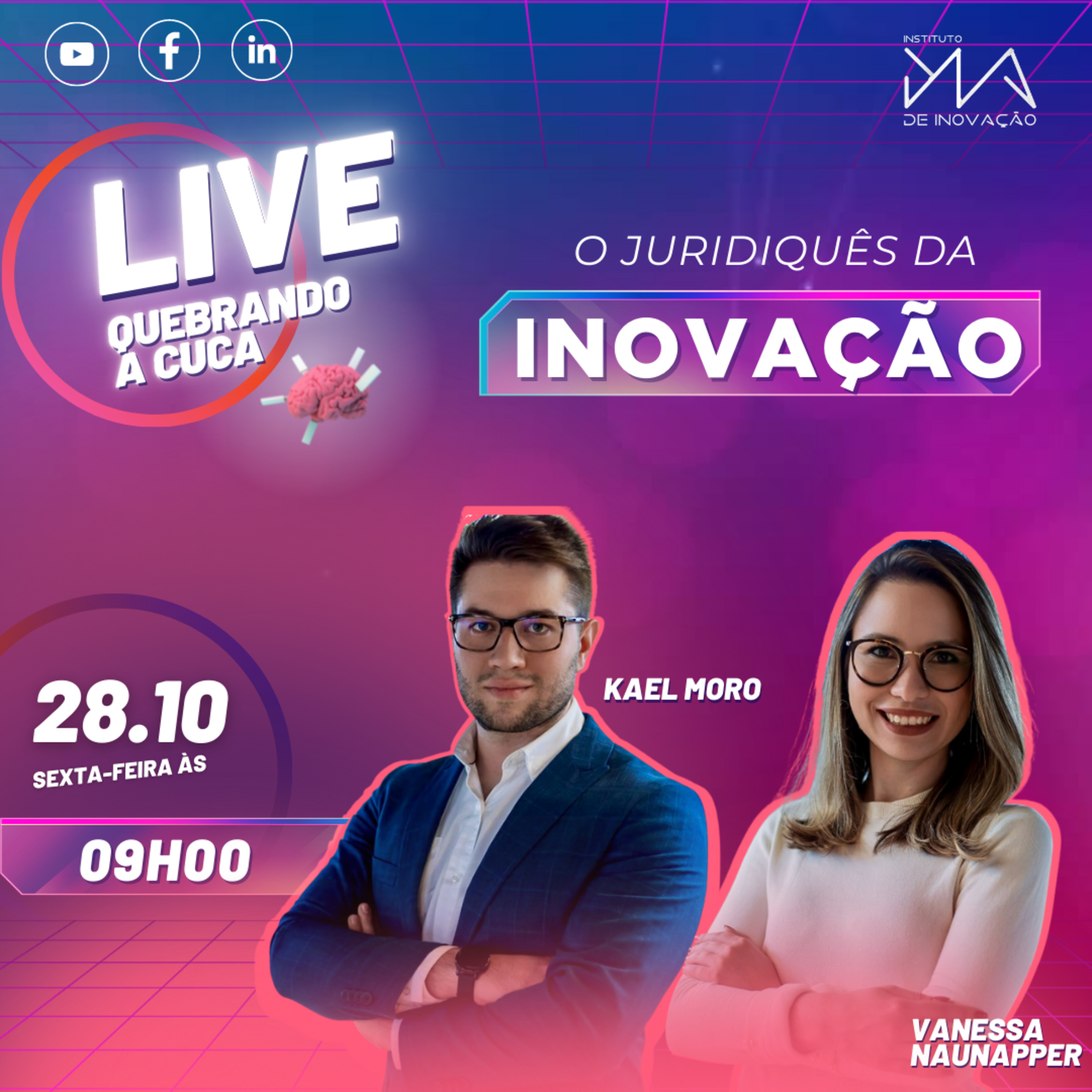Ás 9h da manhã, dia 28/10 a cuca vai quebrar ao vivo no nosso Facebook, Youtube e LinkedIn!