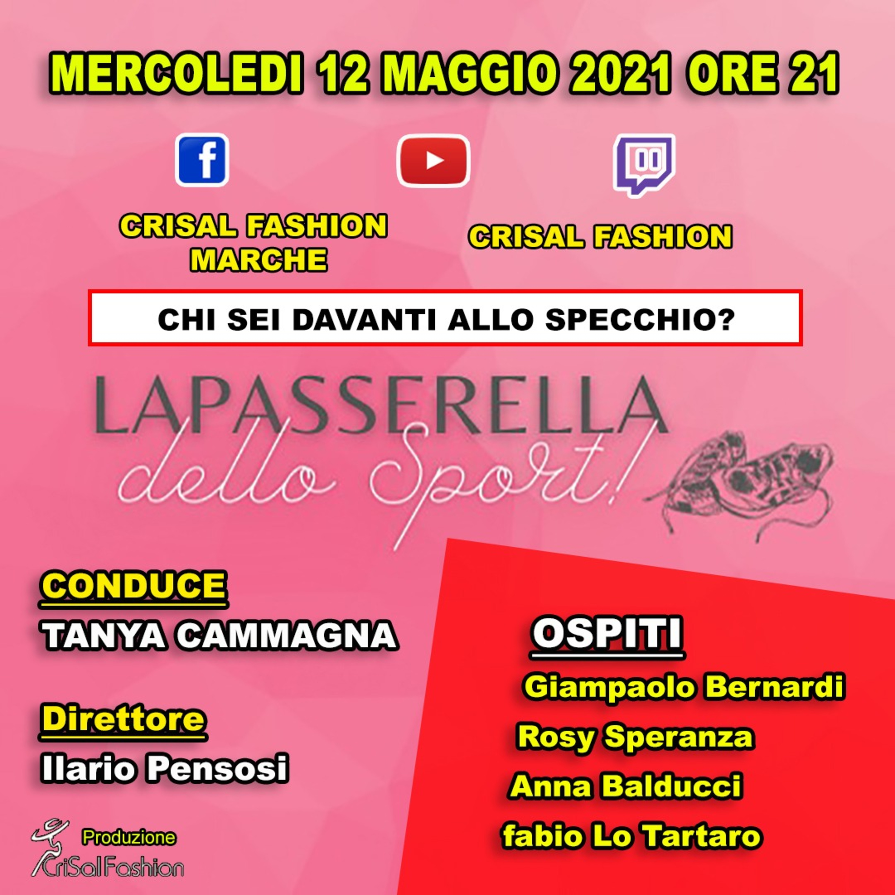 la Passerella dello sport, diretta del 12 maggio 2021 ore 21, condotta da Tanya Camagna, direttore del programma Ilario Pensosi.