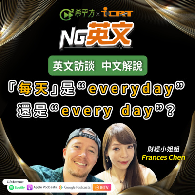 今天的 NG 英文邀請到的來賓是加州柏克萊大學畢業的高材生財經小姐姐 Frances! 已有相當多股市工作經驗且專業領域橫跨金融、生技、科技業的Frances,目前於一間科技公司服務,此外還經營一個財經訪談的podcast節目,邀請不同領域的來賓分享經歷、產業及投資趨勢等等!想知道更多關於Frances的旅美的經歷跟學習英文的故事嗎?那你一定不能錯過本週Frances的分享!