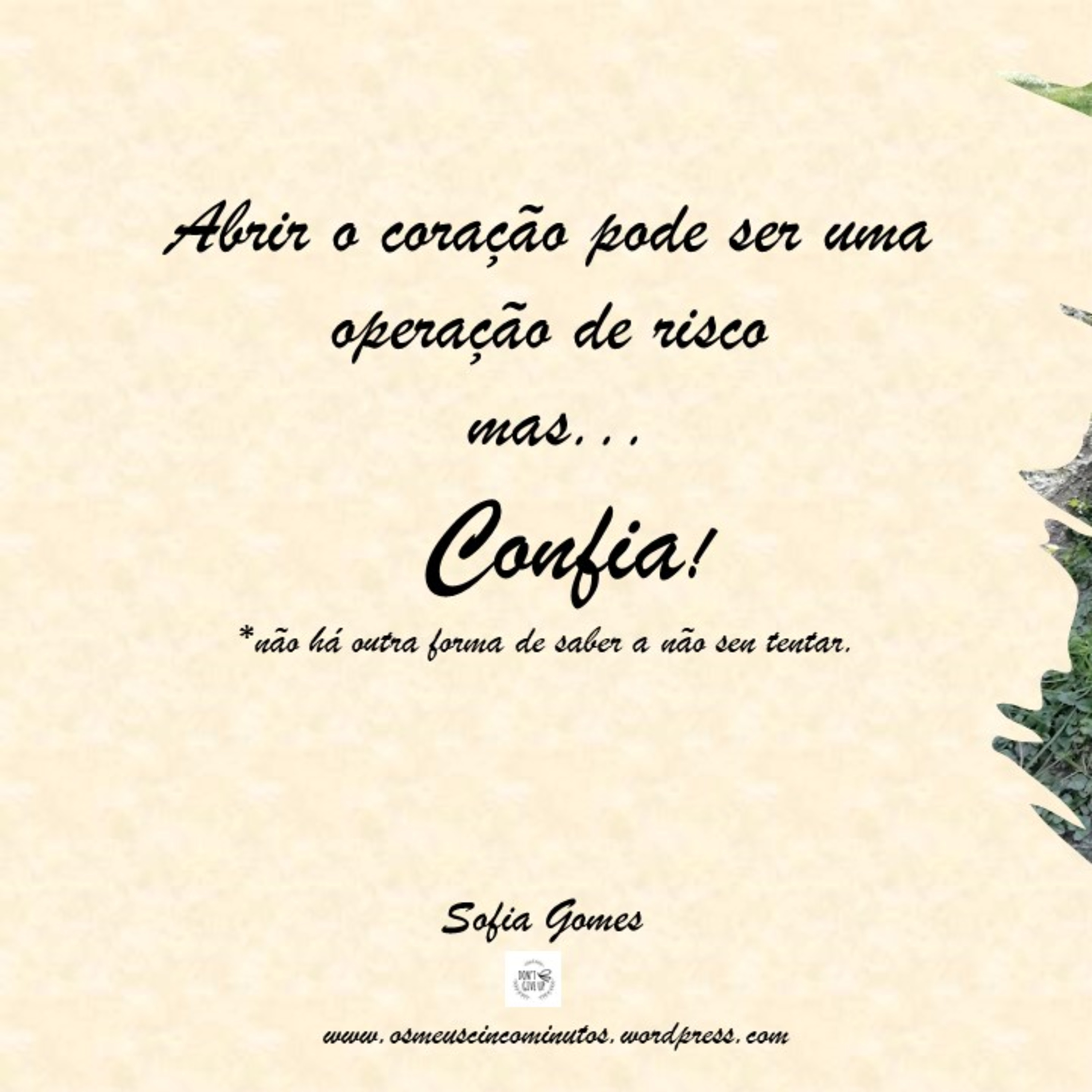 Penso que amar é isto. Não ter garantias de nada e mesmo assim decidir continuar esse caminho desconhecido.